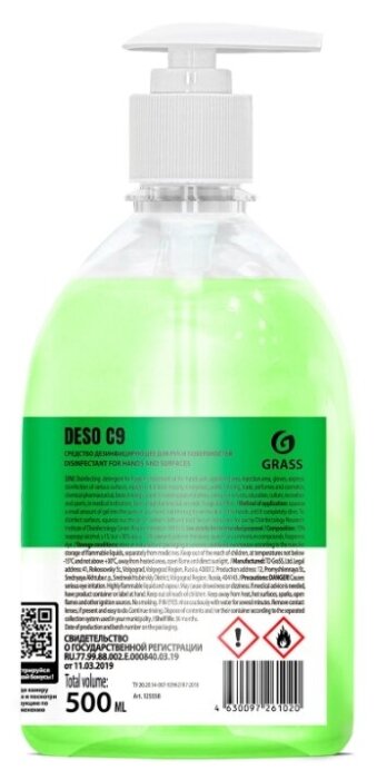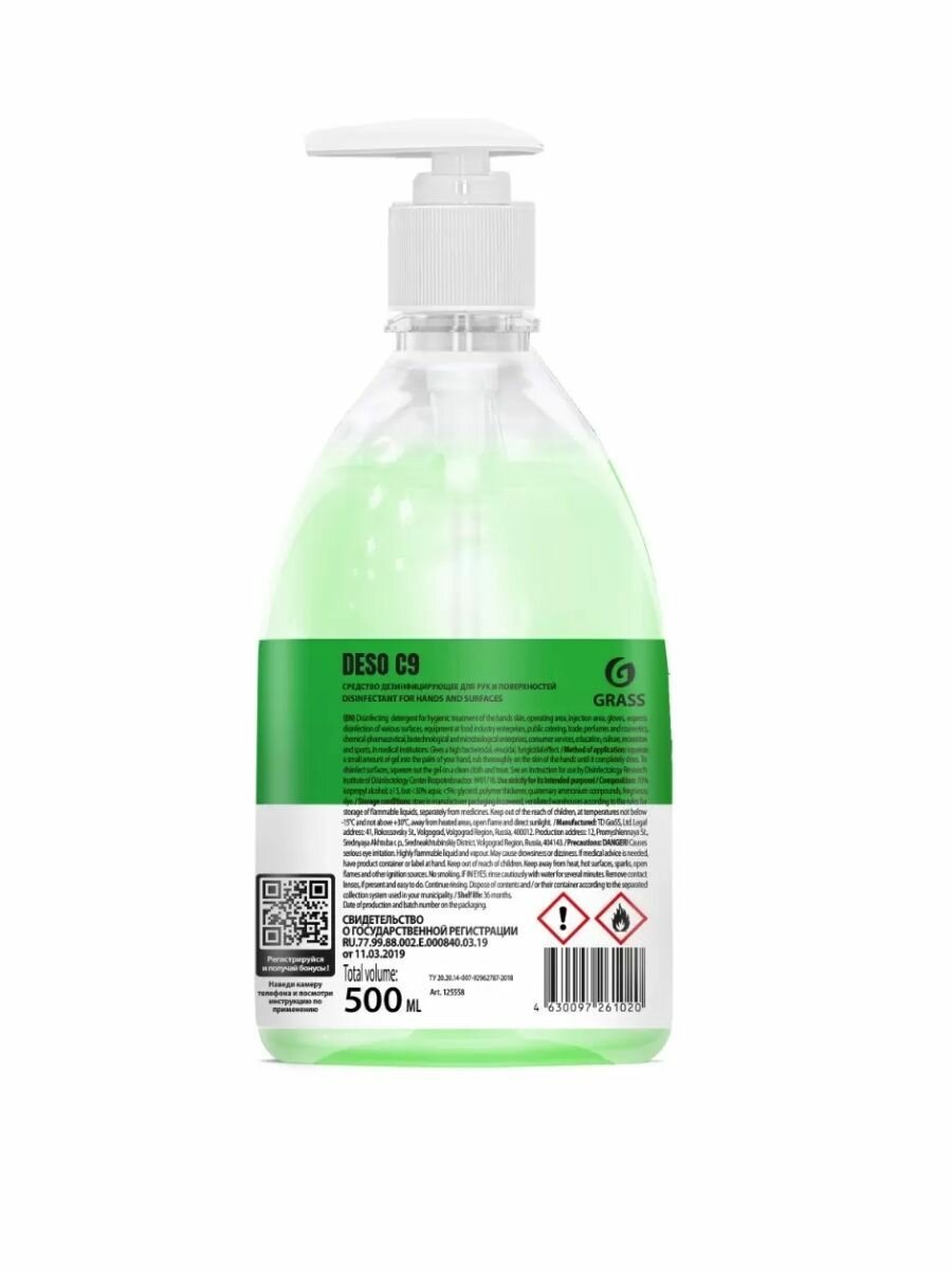 | Полное наименование | Дезинфицирующее средство на основе изопропилового спирта DESO C9 гель (ананас) 500 мл |