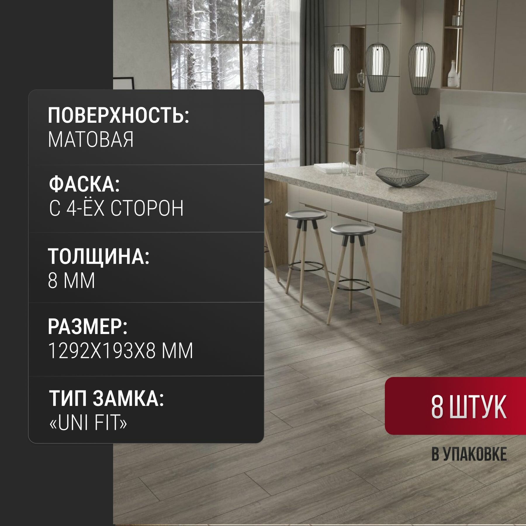 Ламинат Egger Large 8/32 Aqua+ EPL185 Дуб Шерман серый 1292х246х8 мм