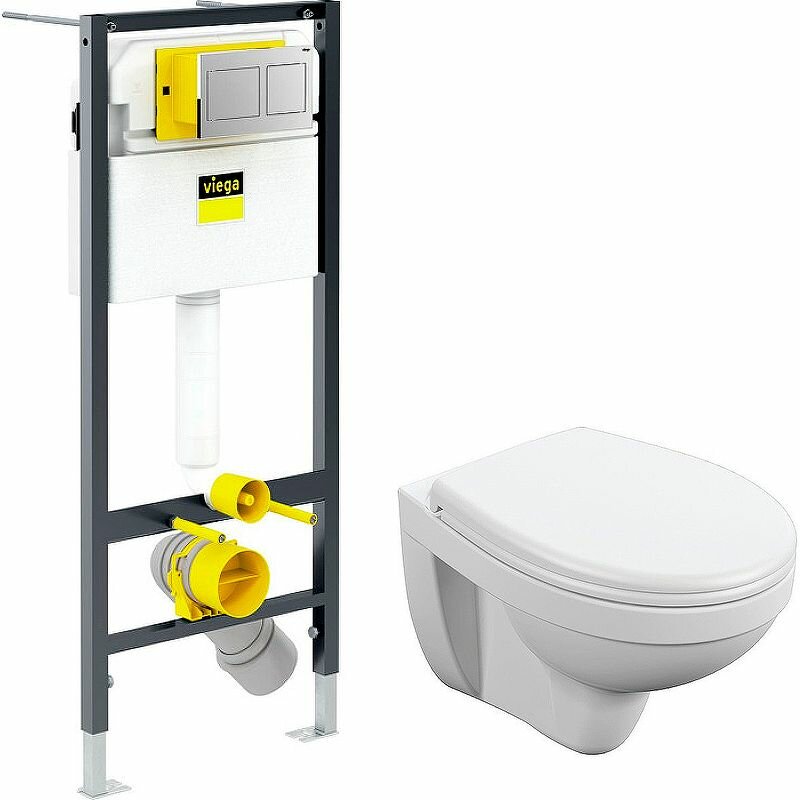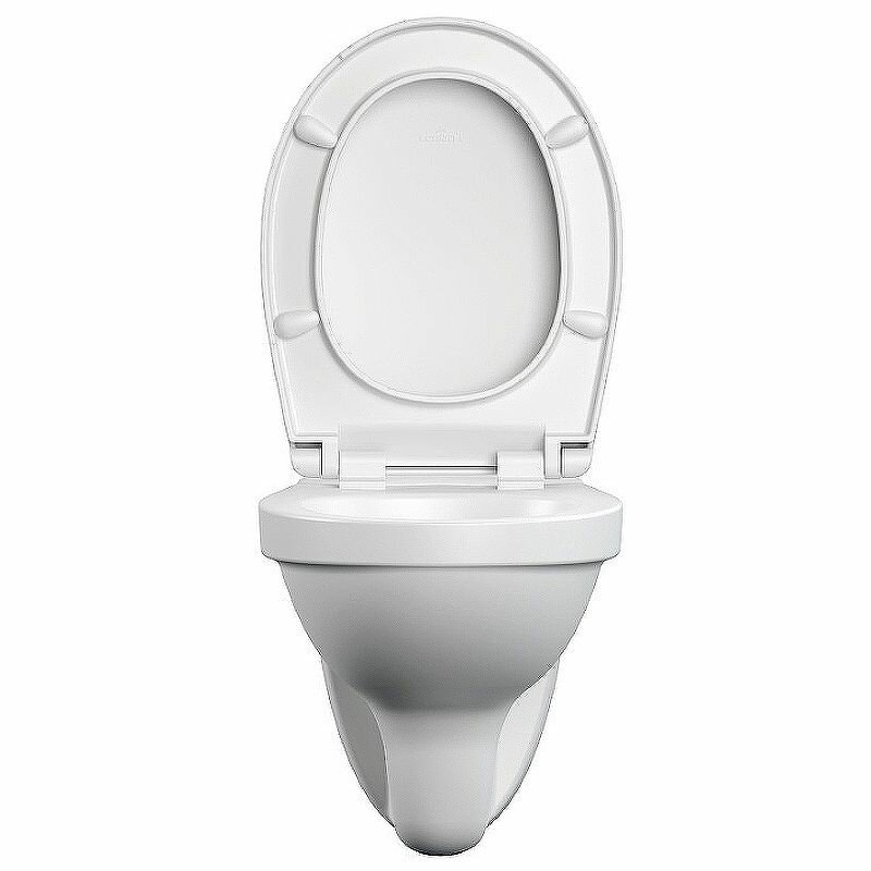 Чаша унитаза изготовлена из белого глазурованного фарфора. Крепится к раме, которая вместе с коммуникациями закрывается фальш-стеной. Инсталляция с рамой, бачком, сливной трубой докупается отдельно. Для монтажа в комплекте идут крепежные детали. Размеры унитаза — 36х52,3х37 см — подходят для малогабаритного помещения.
