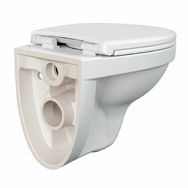 Унитаз подвесной Delfi состоит из овальной чаши и сиденья с крышкой. У чаши воронкообразный слив и горизонтальный выпуск. Для скрытого крепления с тыльной стороны устроены два отверстия под шпильки. Сиденье оснащено микролифтом для плавного опускания крышки.