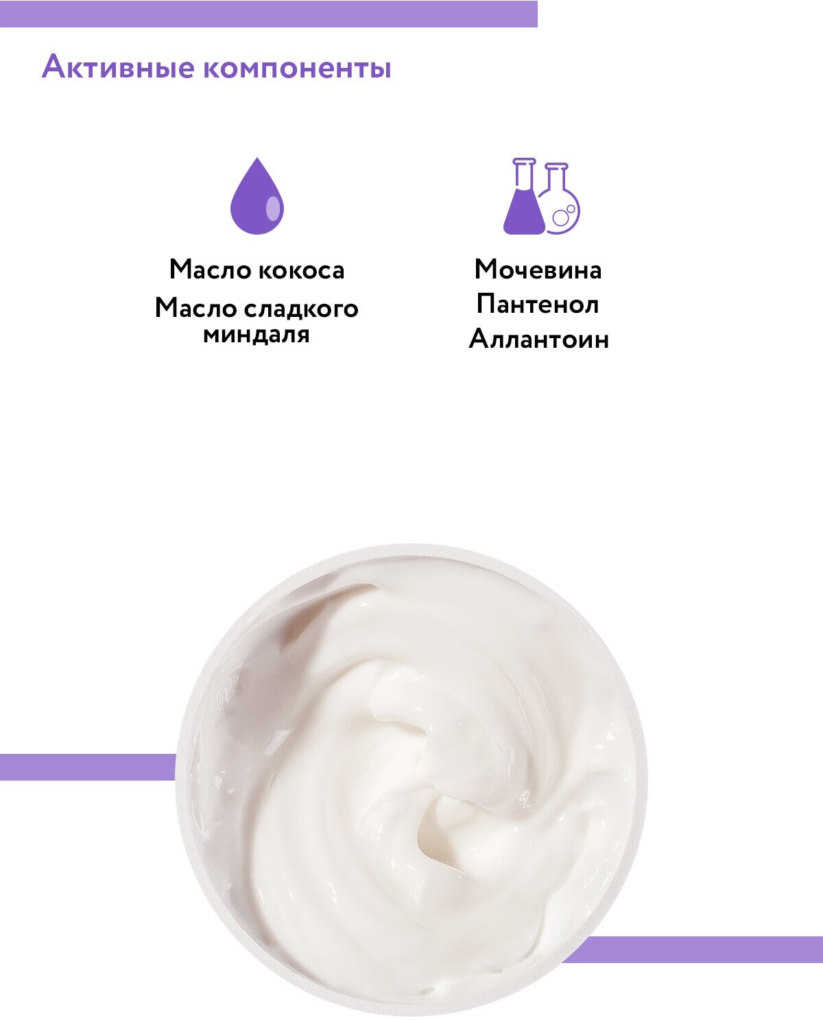 | Химический состав | Aqua, Hydroxyethyl Urea, Cocos Nucifera Seed Butter, Glycerin, Potassium Cetyl Phosphate, Prunus Amygdalus Dulcis (Sweet Almond) Oil, Dimethicone, Propylene Glycol, Phenoxyethanol, Cetyl Alcohol, Glyceryl Stearate, Sodium Acrylates Copolymer, Panthenol, Allantoin, Parfum, Methylparaben, Lecithin, BHT, Propylparaben, Ethylparaben, Benzyl Salicylate, Hexyl Cinnamal |
