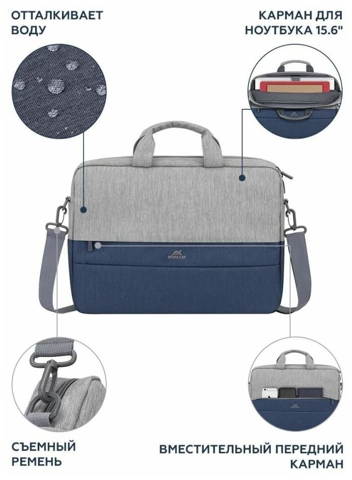 Сумка для ноутбука RIVACASE 7532 15.6'" полиэстр серо-синяя