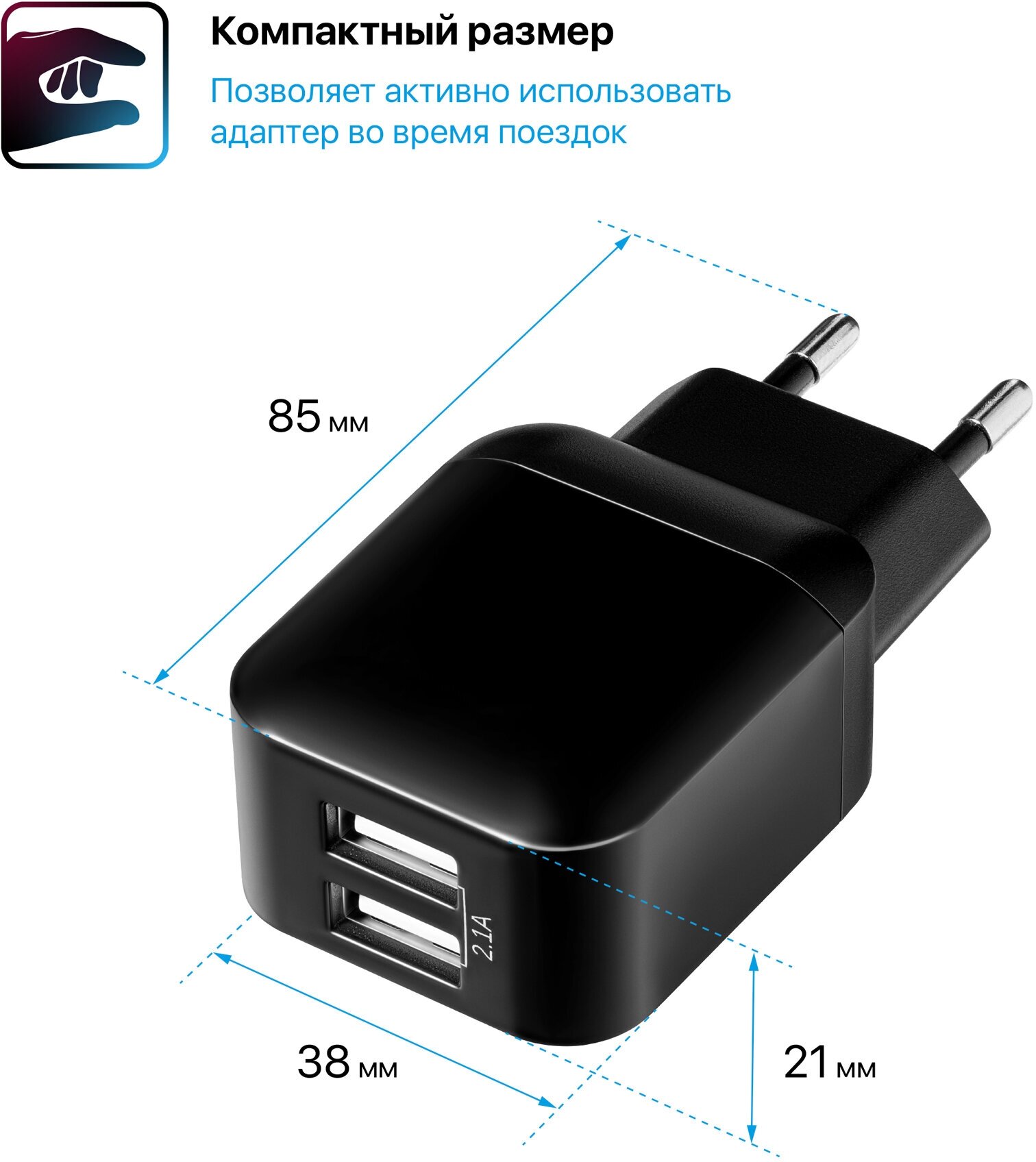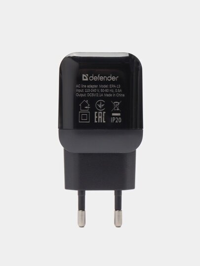 Defender Сетевой адаптер 2xUSB, 5V/2.1А, черный, пакет (EPA-13) ()