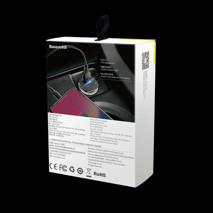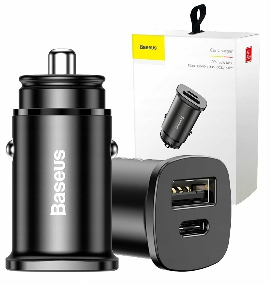 - Автомобильное зарядное устройство Baseus Square Metal 30W PPS Car Charger (PD3.0, QC4.0+SCP, AFC)
