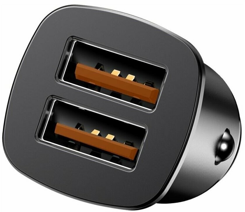 Удобно расположены два широкоразмерных USB-разъема для возможности подзарядки сразу двух гаджетов. Небольшие габариты позволяют хранить автомобильную зарядку, как в бардачке машины, так и носить с собой в сумке или портмоне. Стилистическое решение и цвета девайса отлично впишутся в салон автомобиля. Мягкая светодиодная подсветка разъемов упростит поиск зарядного устройства в темное время суток, и не будет отвлекать водителя от дороги. К главным техническим характеристикам так же можно отнести:
