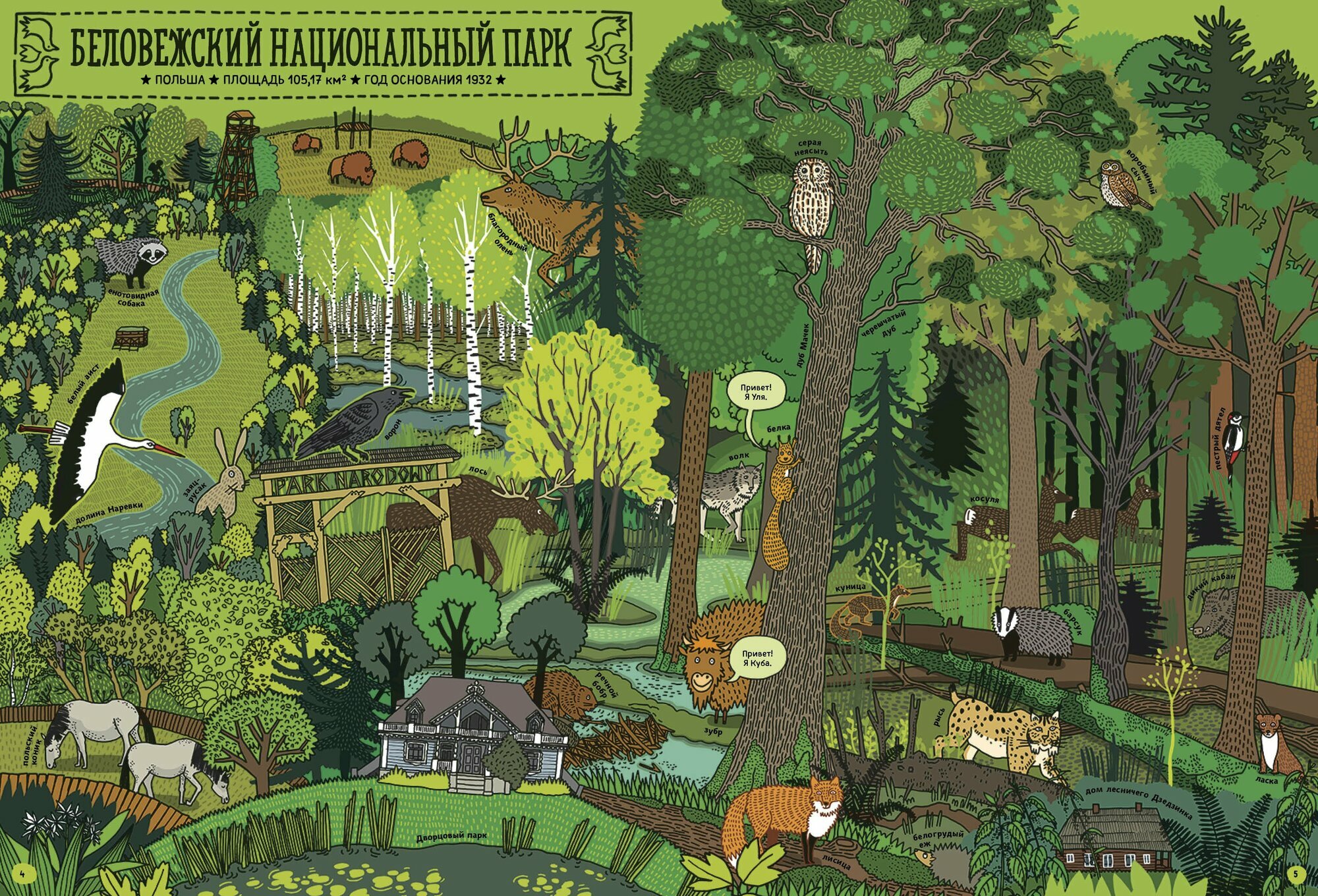 Зубр Куба и белка Уля — пара закадычных друзей из польской Беловежской пущи. Получив загадочное письмо из Америки, они отправляются в большое путешествие по удивительным уголкам нашей планеты. На их пути восемь национальных парков на разных континентах — Намиб-Науклуфт в Африке и Ману в Южной Америке, Гренландский национальный парк и китайский Цзючжайгоу, индонезийский Комодо и новозеландский Фьордленд...Ну а там — редкие животные и растения, причудливые пейзажи и поражающие воображение природные явления. Присоединяйтесь к их экспедиции — и вас ждет множество приключений, а заодно и увлекательных сведений о мире дикой природы.