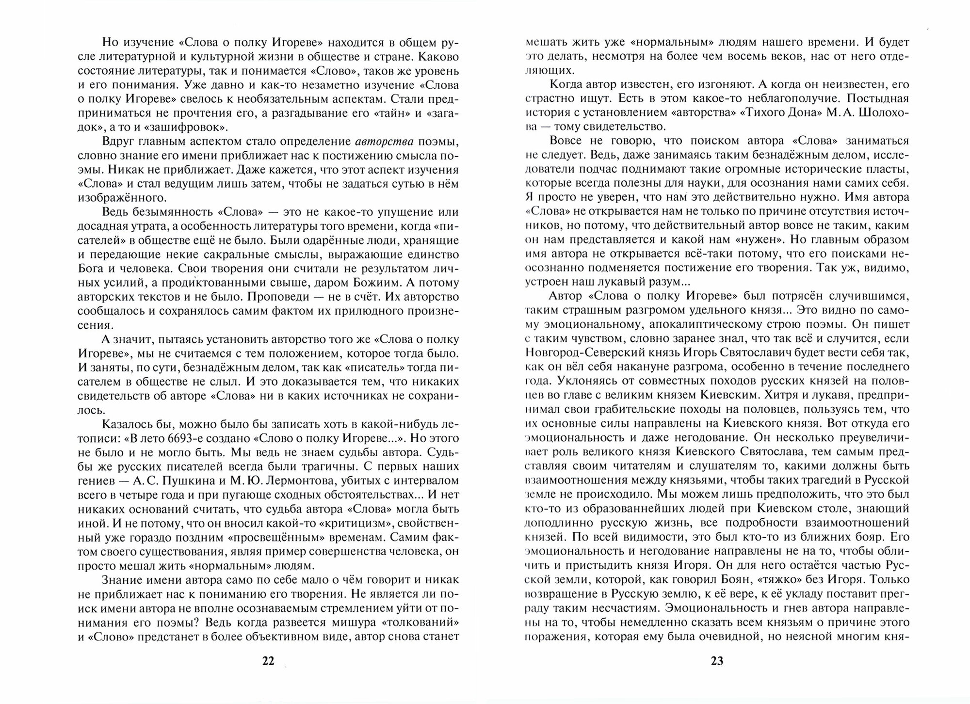 Это поэма о том, как погибает в безверии и как спасается в вере человек. Вот уже более двух веков "Слово" изучается историками, писателями, учёными разных направлений знаний, широкими слоями общества. Ни один памятник письменности не изучался столь активно и всесторонне. Но "Слово" зачастую изучалось лишь как исторический источник, а не духовная природа человека. Настало время его собственно поэтического прочтения, как мощного творения духа и мировоззрения самого автора поэмы. За прошедшие века "Слово" не устарело, так как рассказывает не только о прошлом, о том, что было когда-то, но о том, что происходит с человеком в его земной жизни всегда, во все времена. Оно содержит в себе код нашего народного и государственного бытия.