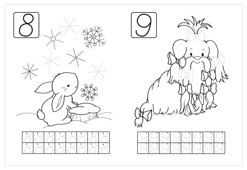 Вы хотите научить малыша писать цифры? Наши прописи помогут вам в этом. Пусть малыш сначала потренирует руку, раскрашивая картинку, а потом попробует выводить красивые ровные цифры в клеточках. Кроме того, считая количество предметов на картинках, вы сможете закрепить у малыша навыки счёта.