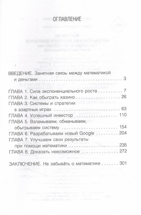 -  Екатерина- 25 апреля 20224/5 Тем, кто любит математику, книга однозначно понравится. Представлены занимательные исторические моменты, события, связанные с математическими вычислениями. Автор знакомит читателей, как математический анализ помогает людям найти более удачный способ решения поставленной перед собой задачи, таке уберечь себя от ошибок с большей вероятностью и донести до людей, что математика - фундамент финансового успеха.