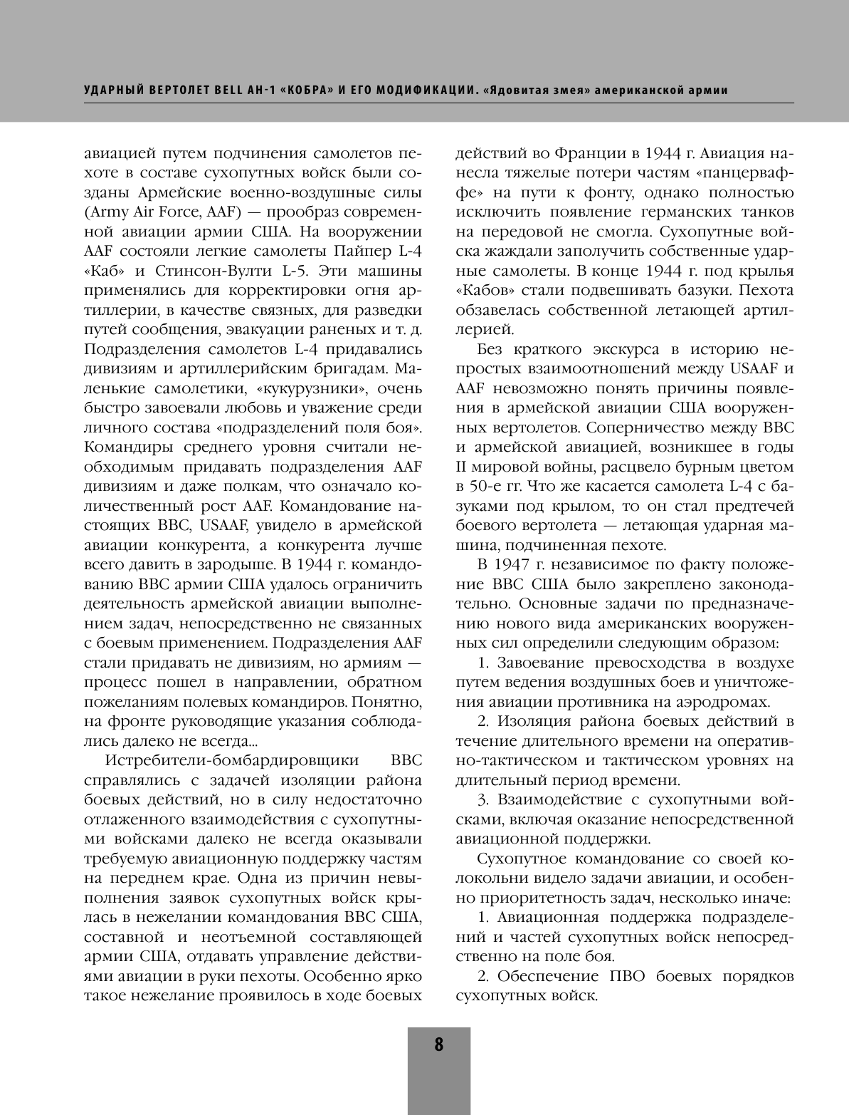 Неплохая работа от широко известного автора, и вторая по счету посвященная вертолётам в легендарной серии "Война и мы. Авиаколлекция". Поднята сравнительно плохо изученная в русскоязычной литературе тема зарождения и совершенствования ударных вертолётов на Западе в годы Холодной войны и после ее завершения. Описывается развитие двух параллельных семейств вертолётов Cobra - армейского, одномоторного (G, Q, P, E, F), и флотского, двухмоторного (J, T, W, Z), а также их модификации, лицензионные и нелицензионные варианты в других странах.