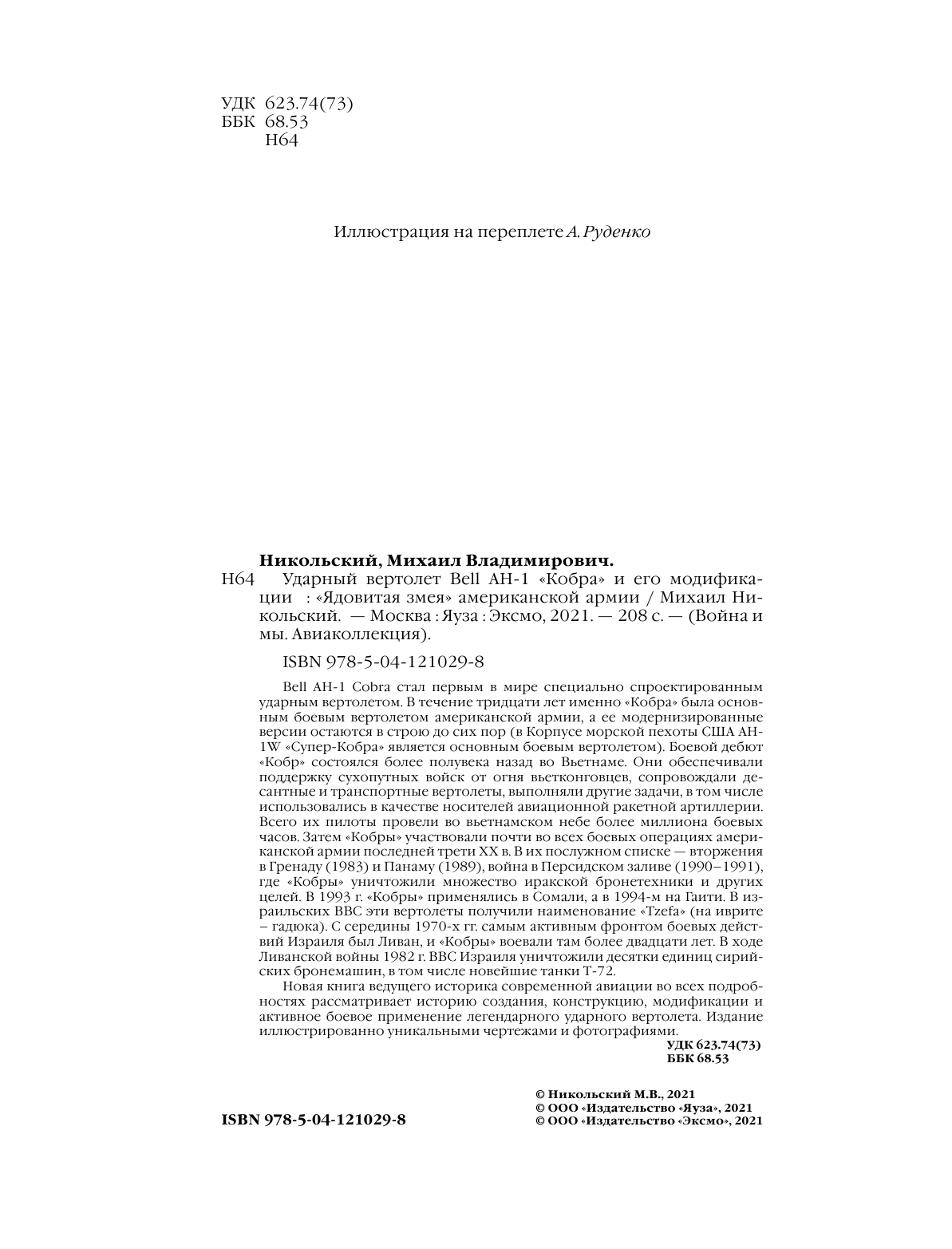 Ударный вертолет Bell AH-1 «Кобра» и его модификации. «Ядовитая змея» американской армии (Никольский Михаил Владимирович); ООО "Издательство "Эксмо", 2021