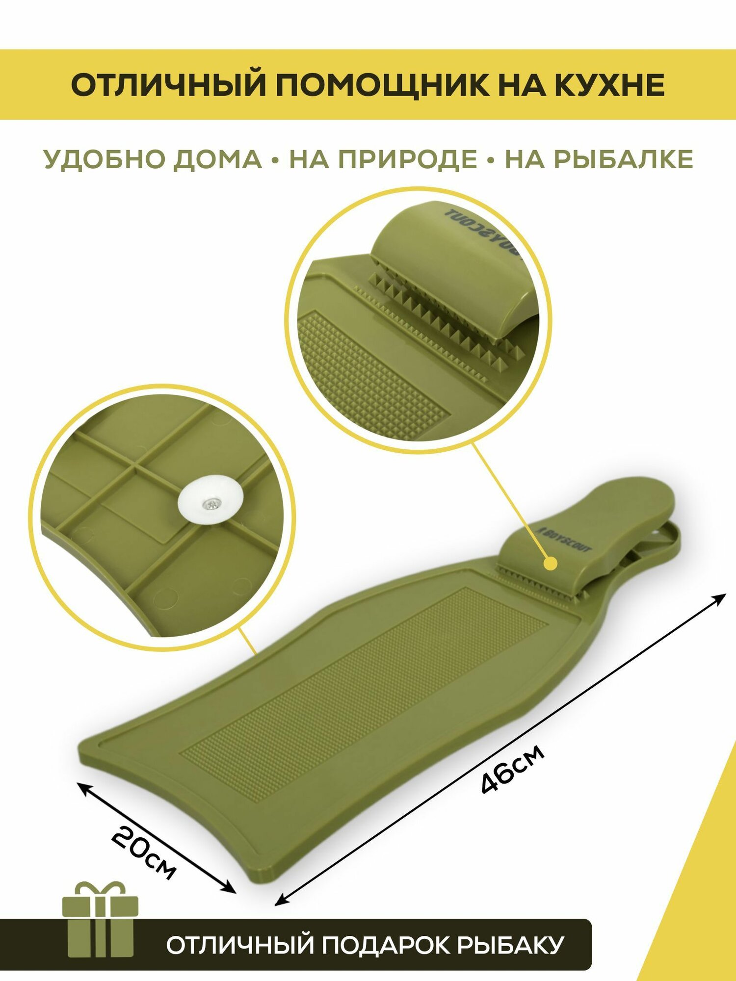 Доска BoyScout для разделки рыбы с зажимом 46см