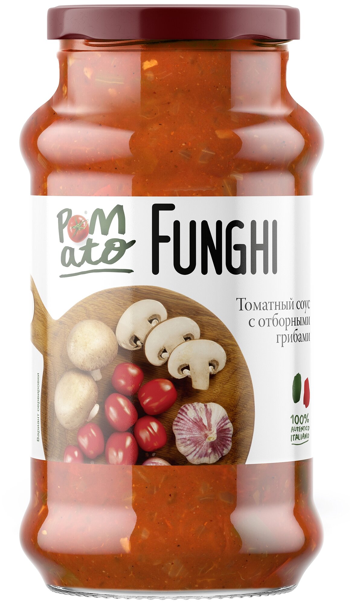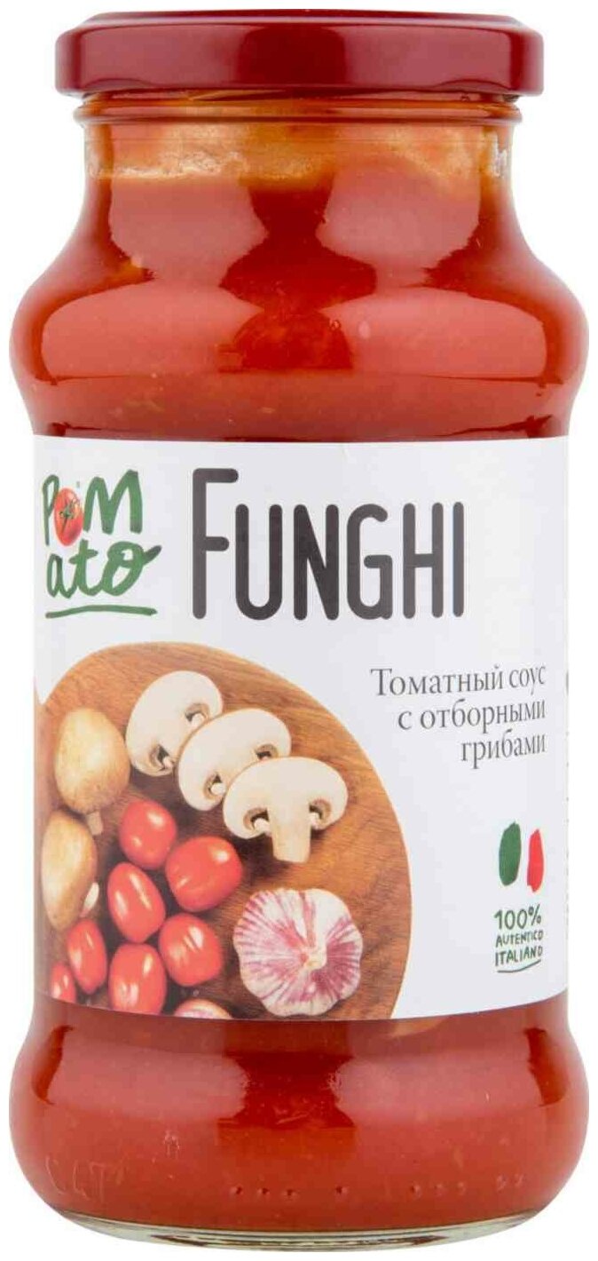 Состав: мякоть томата, концентрат томатный, вода, грибы шампиньоны, масло подсолнечное рафинированное дезодорированное, масло оливковое рафинированное с добавлением масел оливковых нерафинированных (Olive Oil), загуститель крахмал картофельный модифицированный, сахар, соль, чеснок, ароматизатор пищевой, регулятор кислотности кислота молочная