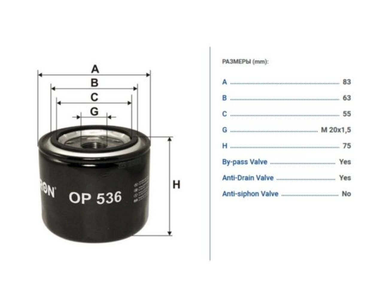 Фильтр масляный FILTRON OP536