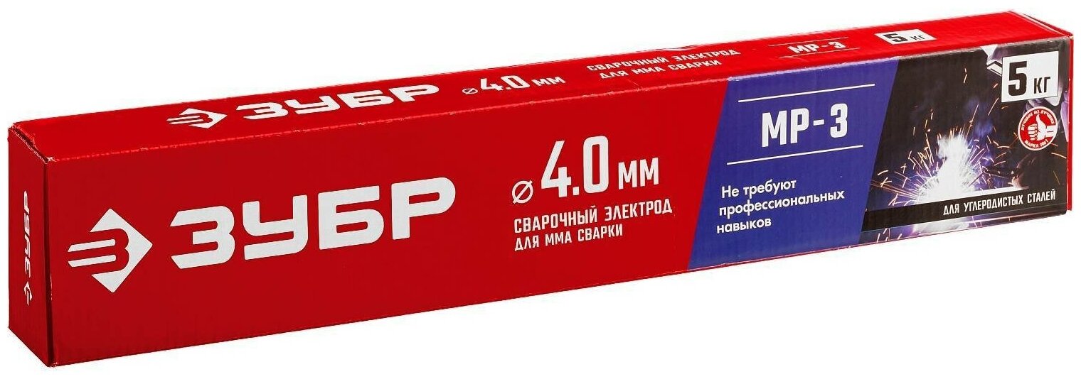 Электрод сварочный Зубр 40011-2.0 МР-3 с рутиловым покрытием, d 2,0 х 300 мм, 1 кг