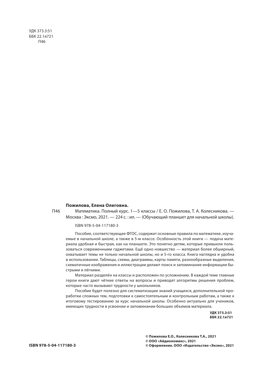 Математика. Полный курс. 1-5 классы (Пожилова Елена Олеговна, Колесникова Татьяна Александровна); ООО "Издательство "Эксмо", 2021