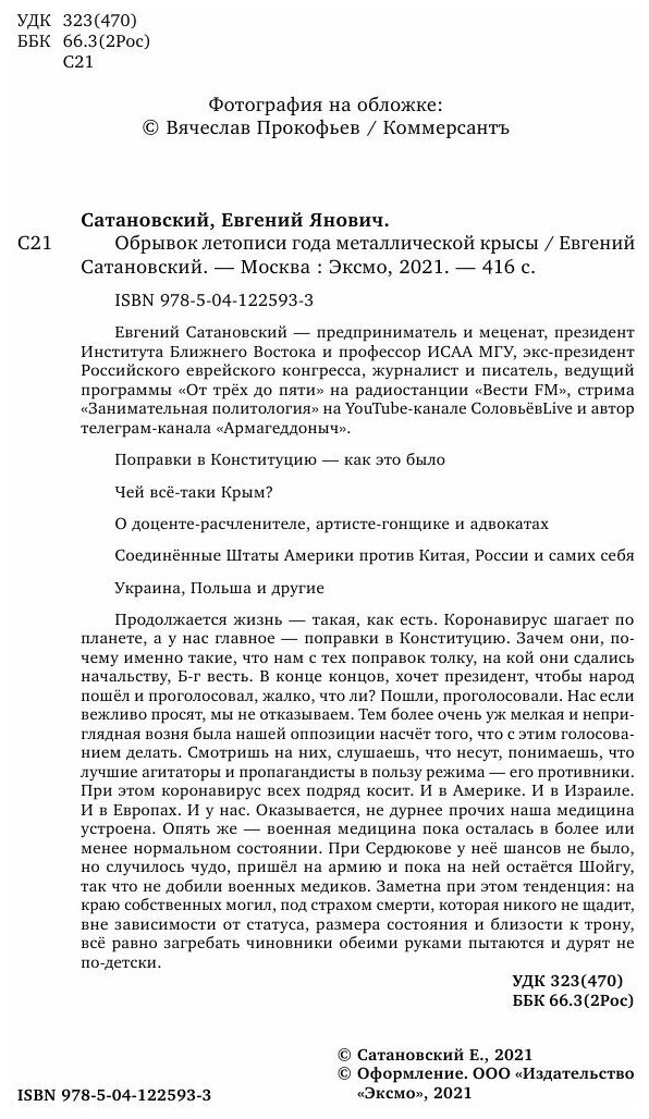Обрывок летописи года металлической крысы (Сатановский Евгений Янович); Эксмо, Редакция 1, 2021