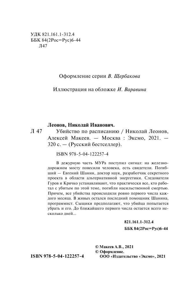 Книга: Убийство по расписанию (Леонов Николай Иванович, Макеев Алексей Викторович); ООО "Издательство "Эксмо", 2021