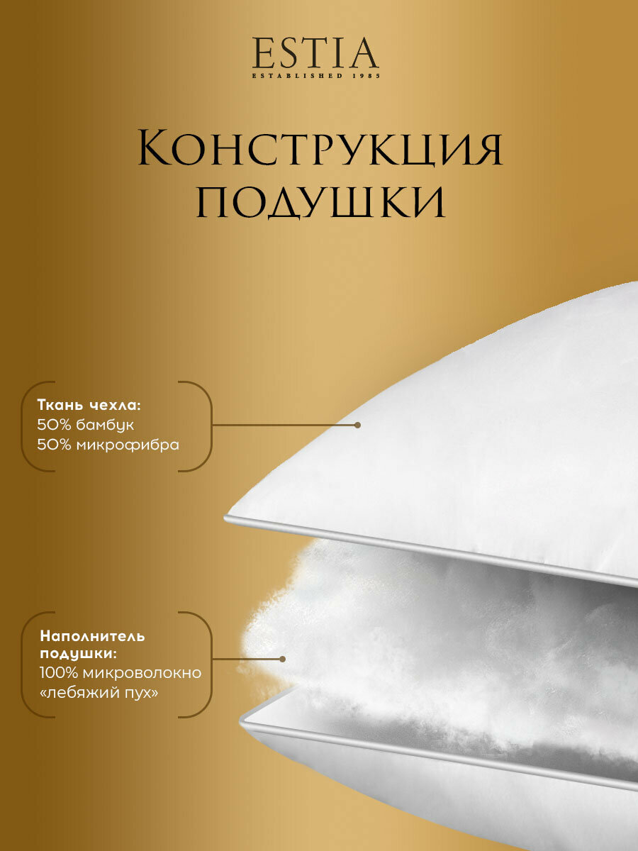 Подушка Hotel Collection с кантом. Ткань МИКРОБАМБУК: 50% бабмук 50% микрофибра, Наполнитель : микроволокно «Лебяжий пух» Ultra Soft, с молнией для регулирования высоты изделия. Упаковка PVC со вставкойВспомните свой лучший отпуск и отдых в отеле. Вспомните, как после насыщенного дня, полного прогулок и впечатлений, вы возвращались в отель, ложились в постель и наслаждались мягкостью подушки, теплом одеяла и нежностью идеально выглаженного постельного белья. Коллекция Hotel Collection вернет вас в эти дни, пробудит счастливые воспоминания и подарит ощущение настоящего комфорта.Подушка Hotel Collection с кантом — модель на основе наполнителя из микроволокна. Искусственный лебяжий пух гипоаллергенен и отличается высокой износостойкостью: благодаря упругим, особым образом скрученным волокнам наполнитель хорошо сохраняет форму изделия даже после стирки.Подушка с таким наполнителем мягкая и легкая, а для регулировки высоты изделия на чехле есть молния. Микроволокно антибактериально — это неблагоприятная среда для патогенных микроорганизмов, пылевых клещей, плесени и грибков.Чехол из микробамбука — переработанных волокон бамбуковых стеблей и микрофибры — обладает мягкой и нежной поверхностью. Он стильно оформлен и декорирован плетеным кантом серебристого цвета. Подушка проста в эксплуатации и подарит вам максимальный комфорт во время сна.