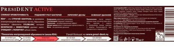 President Зубная паста при парадонтозе "Актив" 75 мл (8030009500739)