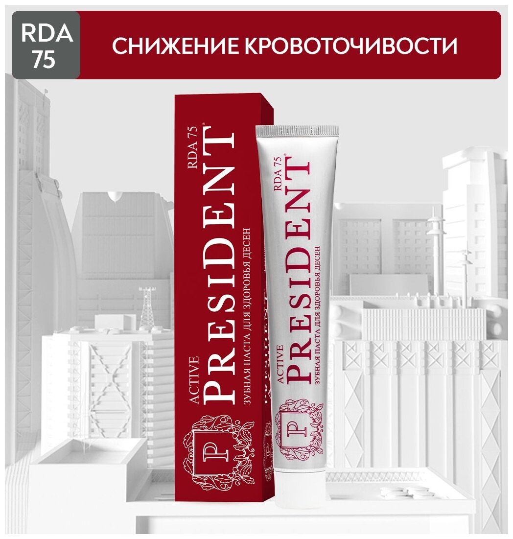 На сегодняшний день товар «President Зубная паста при парадонтозе "Актив" 75 мл (8030009500739)» можно купить с кешбеком в 1 магазине: Яндекс.Маркет
