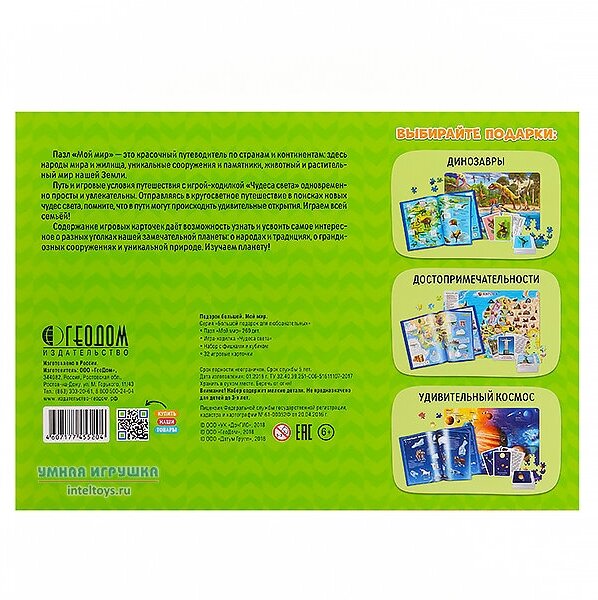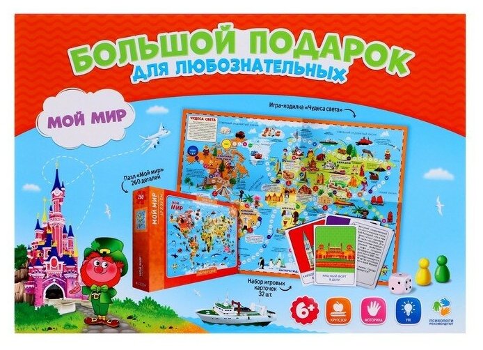 | Комплектация | пазл 260 деталей; игра-ходилка с фишками и кубиком; карточки - 32 шт |