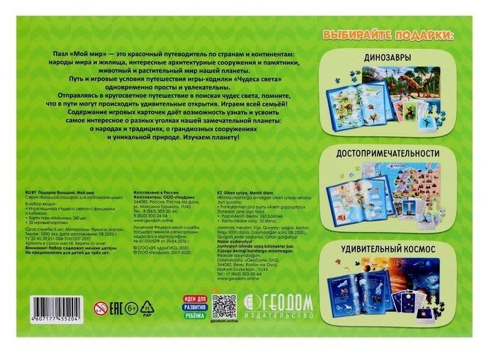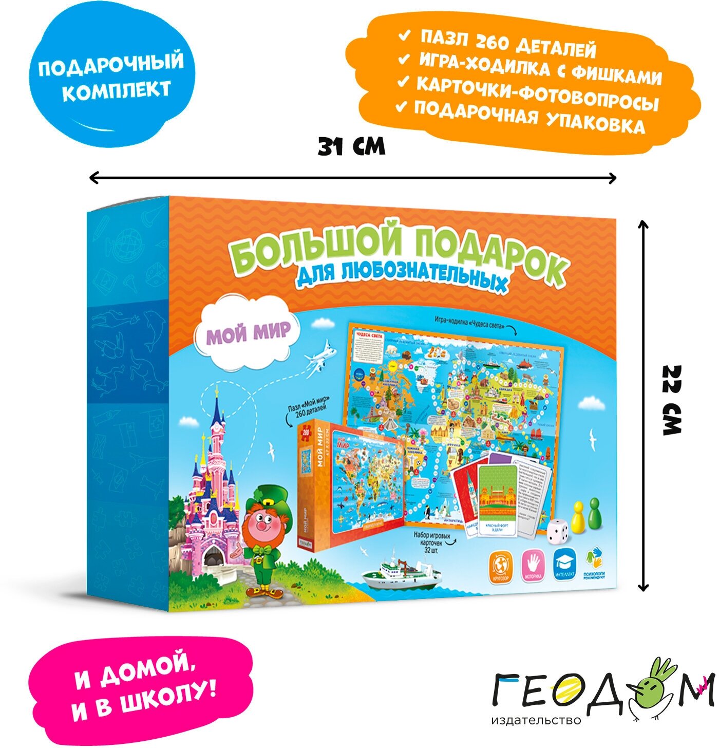 Пазл «Мой мир» — это красочный путеводитель по странам и континентам здесь народы и жилища. уникальные сооружения и памятники, животный и растительный мир нашей Земли.