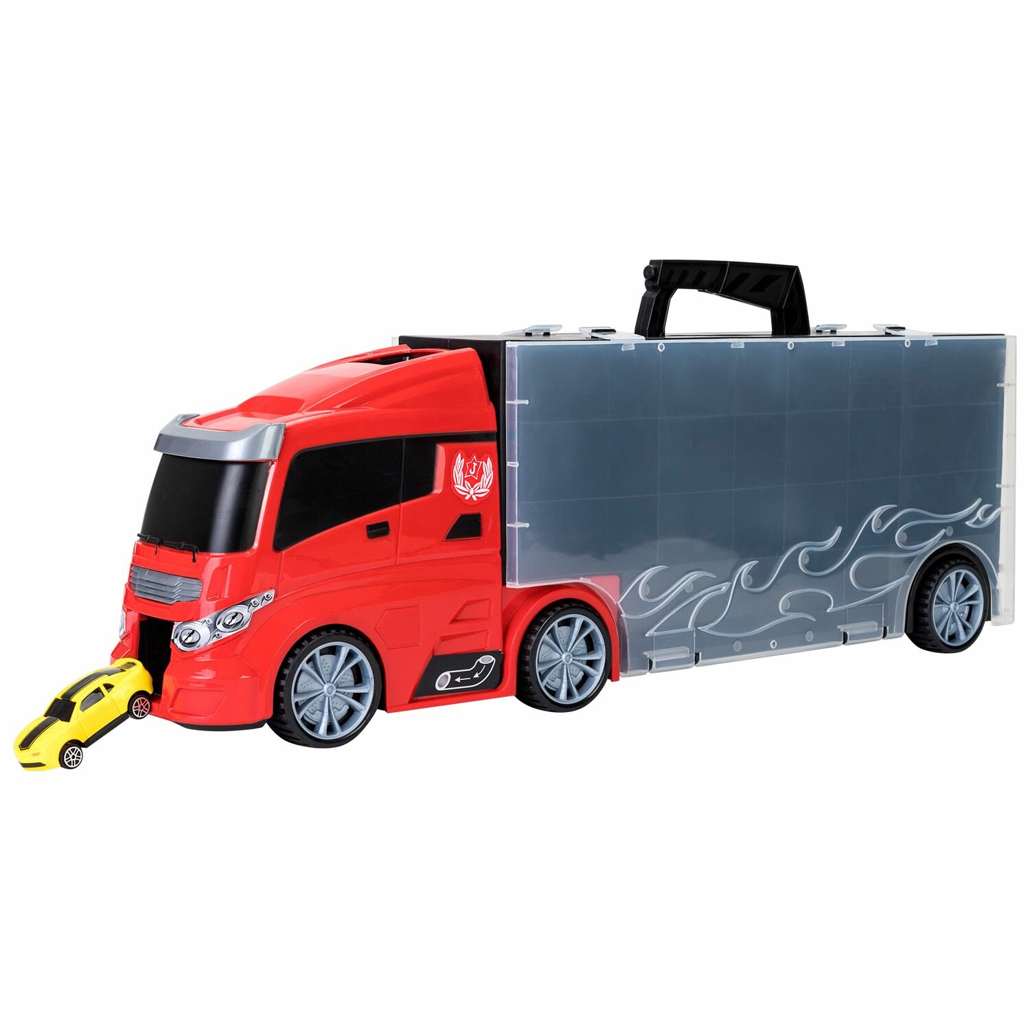 • Автовоз Givito – 2 в 1: игрушечный грузовой автомобиль и система хранения для маленького транспорта.• Длина грузовика - 59 см. • Автовоз является уменьшенной копией реального прототипа и выполнен в современном стиле.• Колеса автовоза подвижные, поэтому он легко катается по поверхности.• Автовоз оснащен удобной ручкой, что позволяет брать его с собой.• В кабину встроен ускоритель машинок, который придаст игре еще больше динамики.• Мини-транспорт хранится в удобных ячейках в кузова с прозрачной крышкой. • Все машинки в наборе изготовлены из безопасного цветного пластика, с подвижными колесами.• Мини-транспорт выполнен очень реалистично с высокой детализацией.• Каждая машинка в наборе уникальна и имеет свой цвет.• В комплекте: автовоз-система хранения, 6 видов транспорта, вертолет, 12 дорожных знаков.• Изделие изготовлено из безопасного высококачественного прочного пластика.• Рекомендуется для мальчиков от 3 лет.