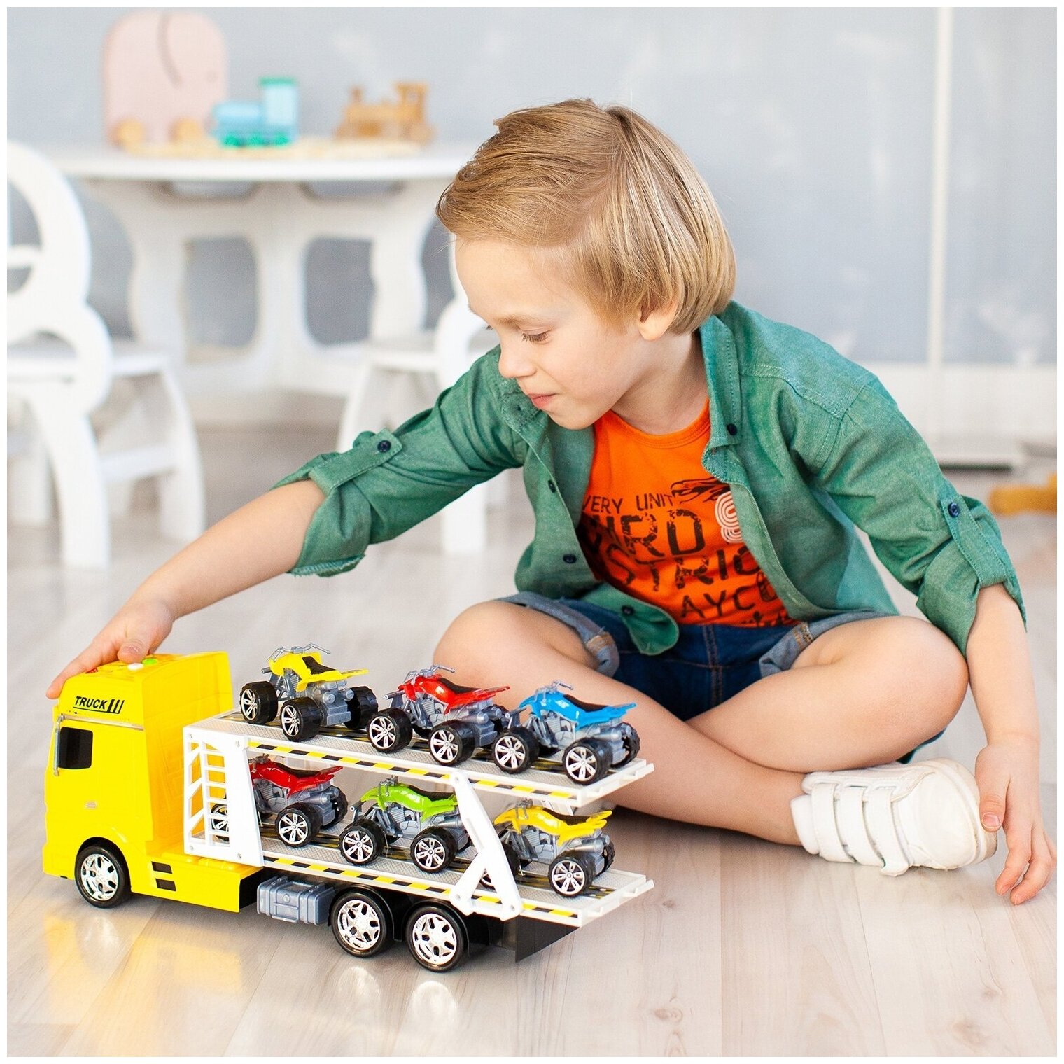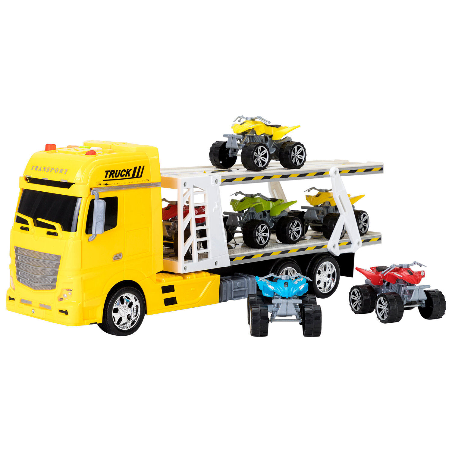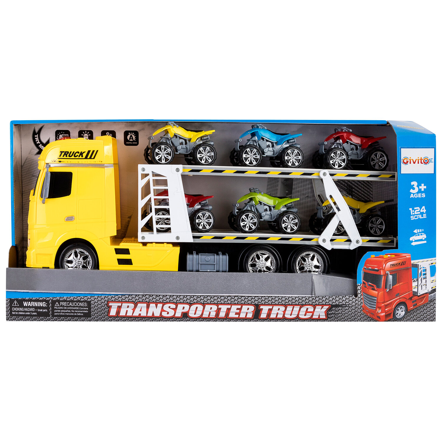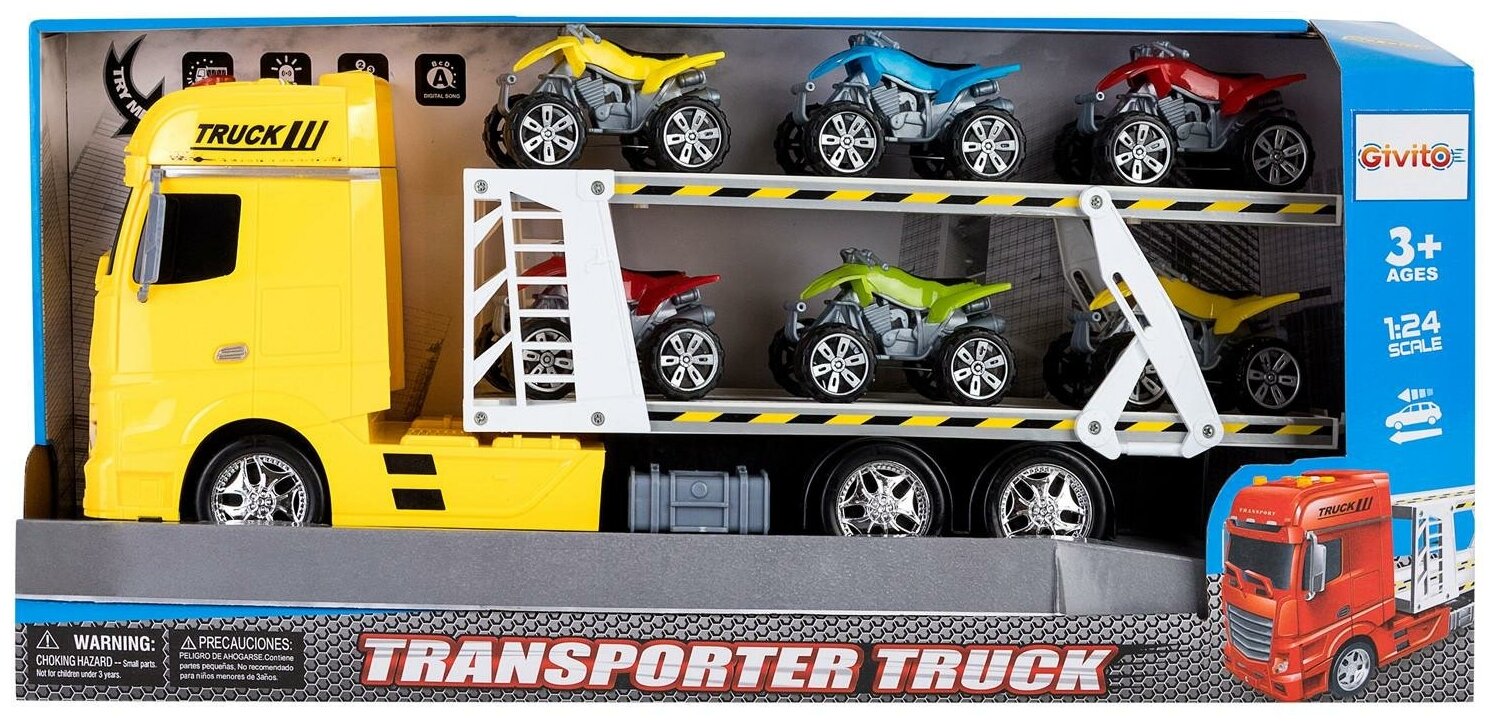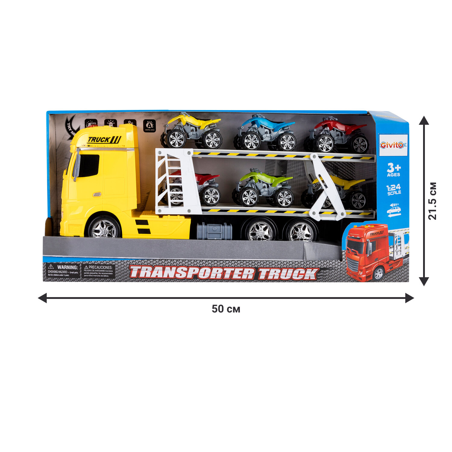 Givito "Мой город" (Автовоз - тягач 45 см со светом и звуком желтый. 6 квардроциклов)