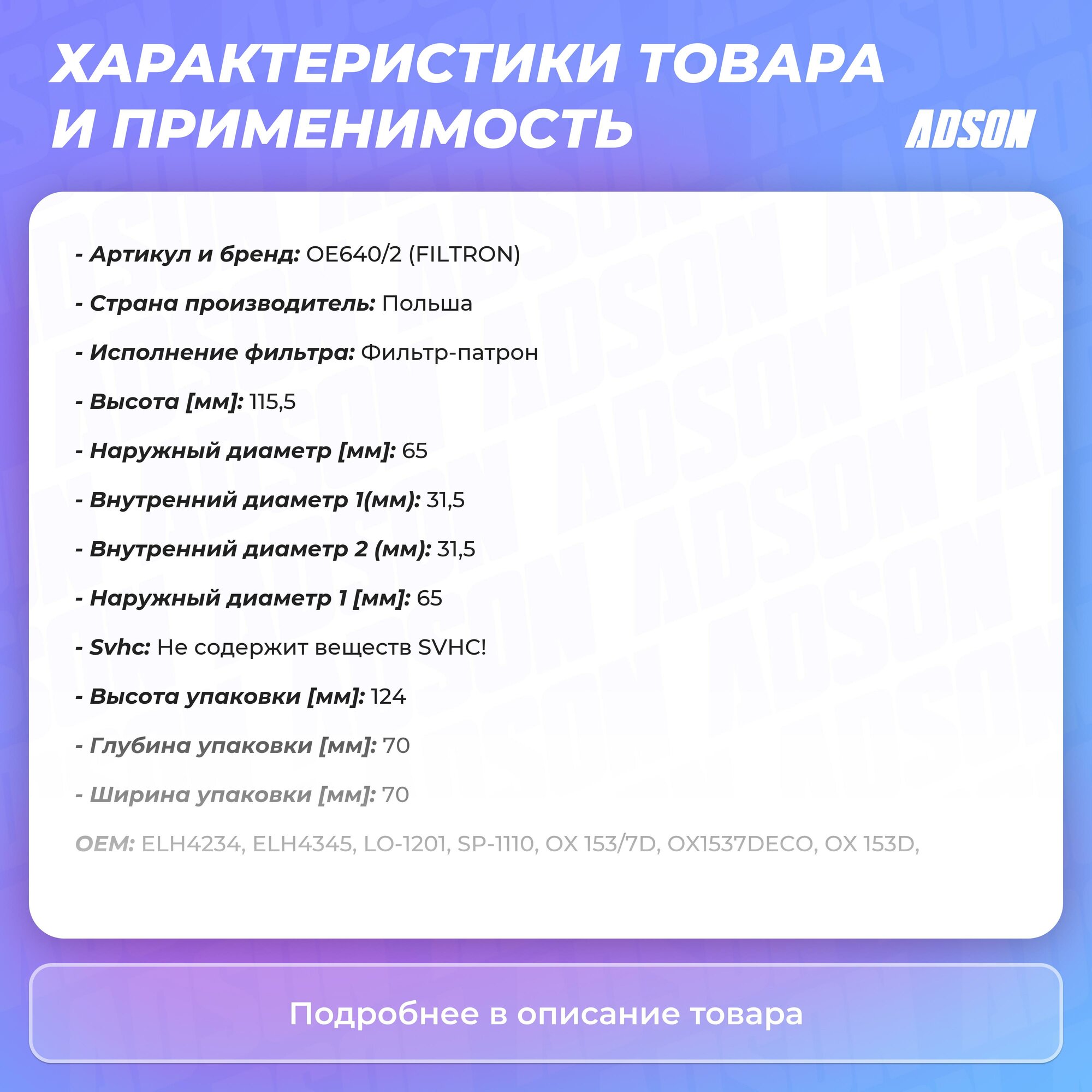 Тип товара: Масляный фильтр