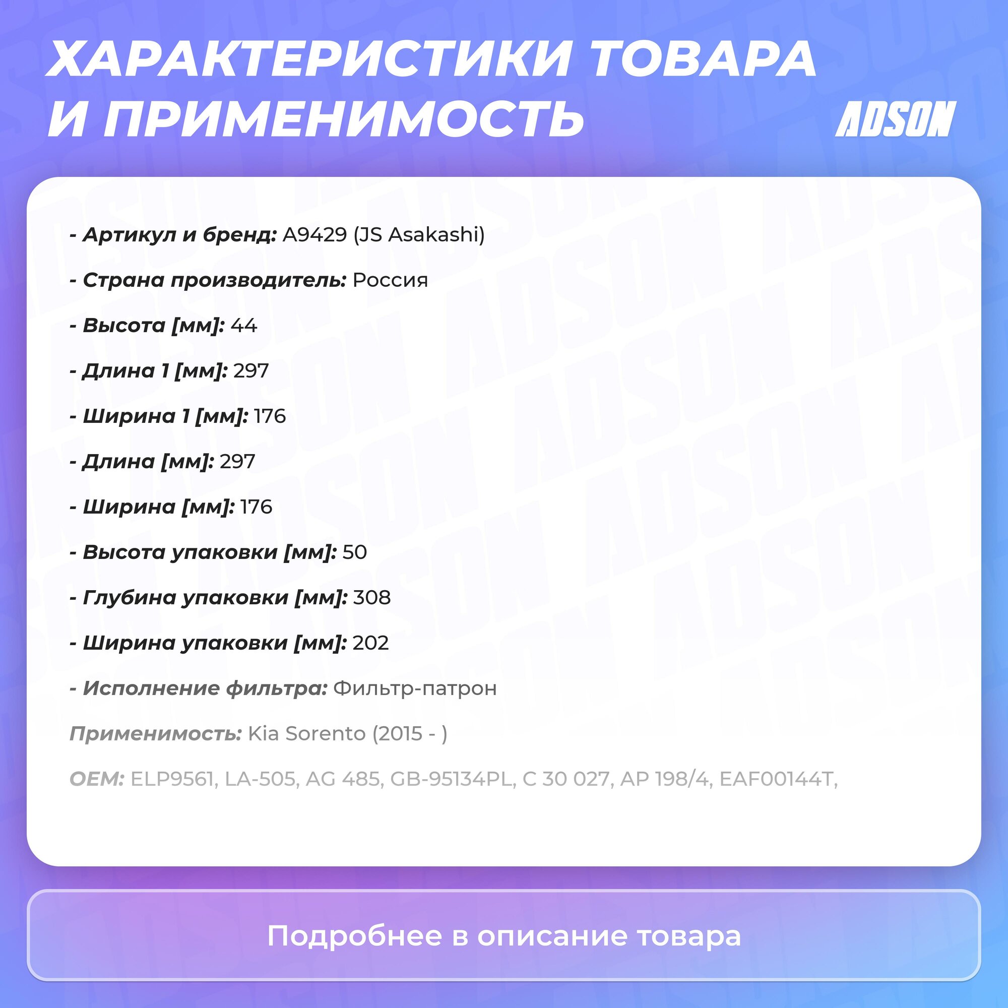 Тип товара: Фильтры автомобильные