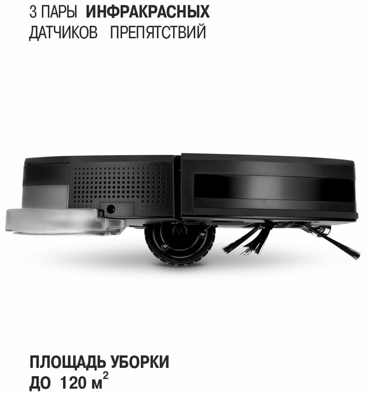 | Особенности | автоматическая работа, автоматический поиск зарядного устройства, таймер включения, боковые щетки, датчик обнаружения препятствий, датчик перепада высоты, индикация застревания |