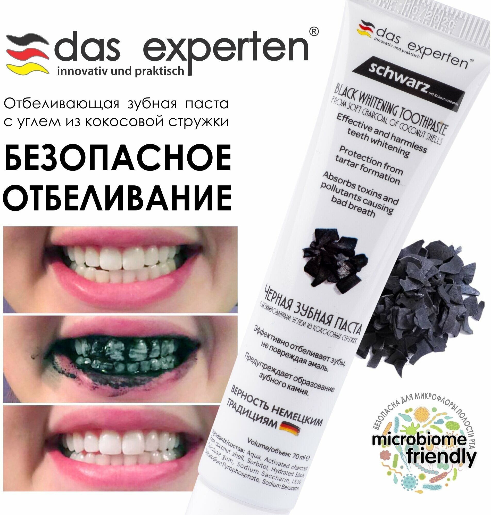 Зубная паста Das Experten "Schwarz" отбеливающая 70мл (2000039655)