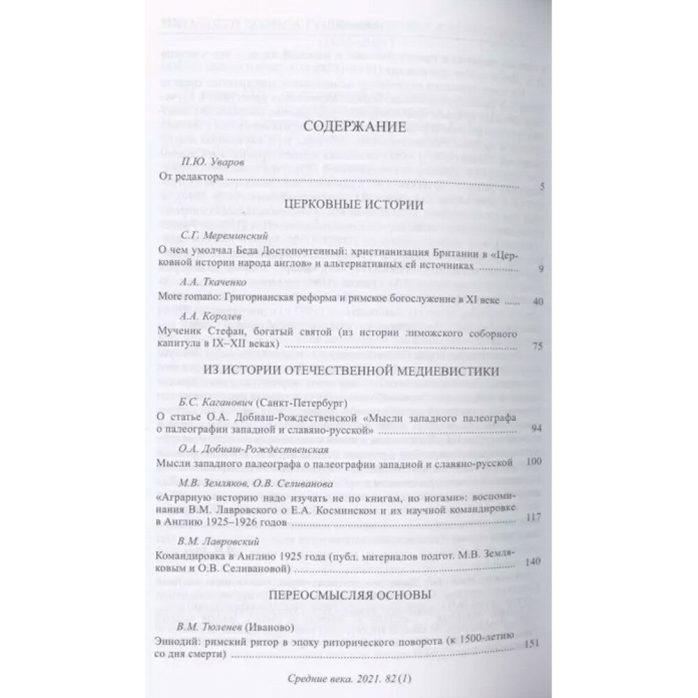 Выпуск содержит подборку материалов по церковной истории: истории христианизации, культа святых и богослужения. Большое место занимают публикации архивного наследия известных отечественных медиевистов — не публиковавшейся ранее статьи О.А. Добиаш-Рождественской и воспоминаний В.М. Лавровского о Е.А. Косминском и об их совместной командировке в Англию 1925 — 1926 гг. Проблемам политического воображаемого, полемических форм и дипломатических контактов посвящен раздел «XV век: политические проекты».