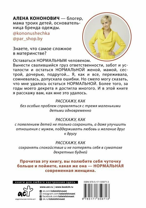 Нормальная мама троих детей. Феномен современной женщины (Алена Кононович); Издательство АСТ, 2017-2021