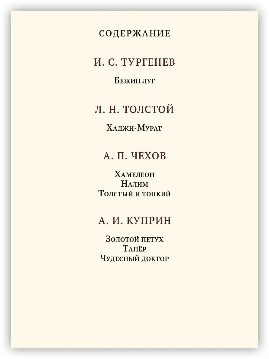 | Автор(ы) | Тургенев И., Толстой Л., Чехов А., Куприн А. |