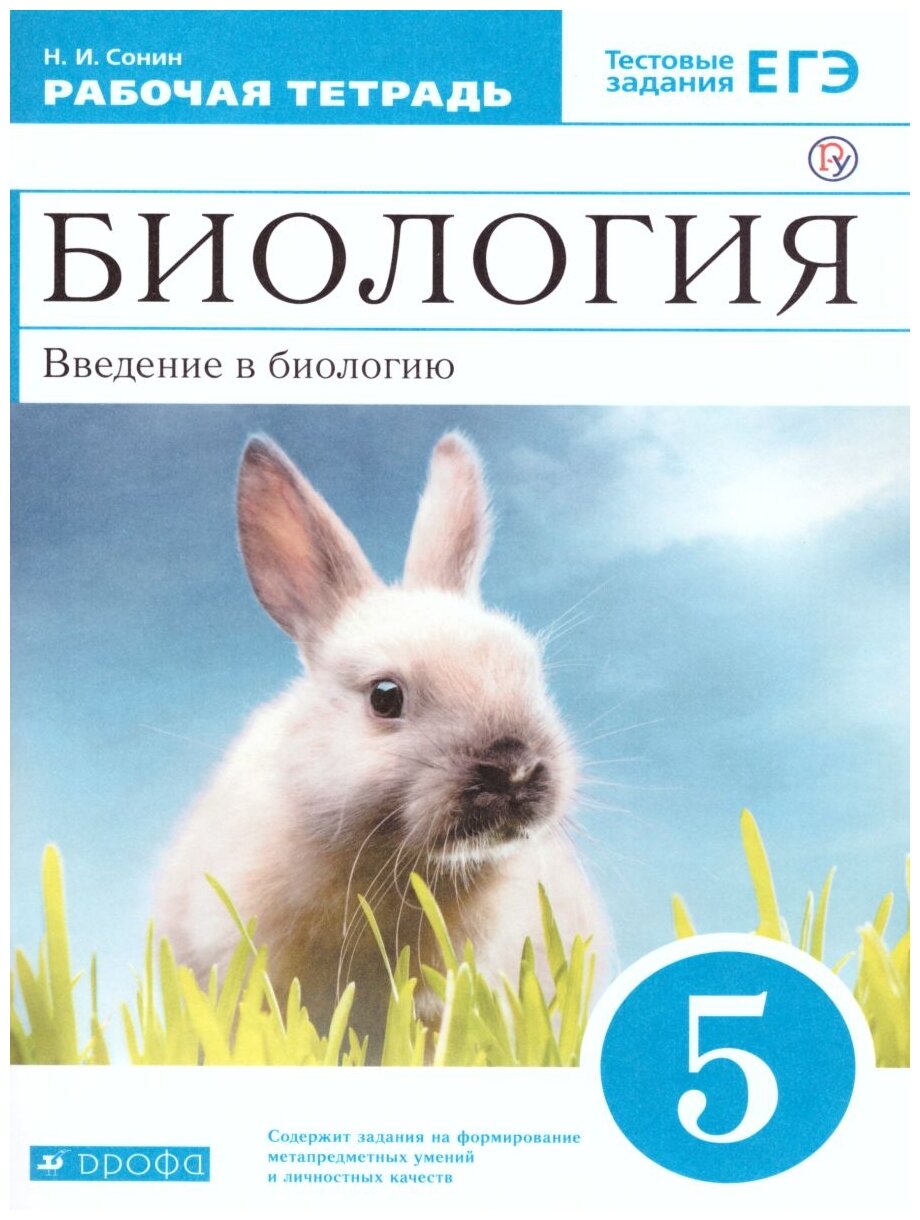 Биология 5 класс Введение в биологию Рабочая тетрадь с тестовыми заданиями ЕГЭ (Сонин Николай Иванович); Просвещение/Дрофа, 2021
