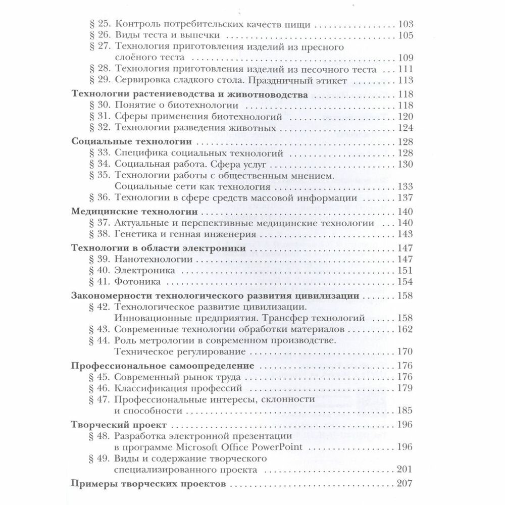 Учащиеся знакомятся с технологиями в области электроники, энергетики, индустрии питания, в сфере СМИ, с социальными, медицинскими технологиями, биотехнологиями. Приобретают опыт мониторинга развития технологий избранной отрасли, удовлетворяющих определенную группу потребностей, на основе работы с различными информационными источниками, опыт разработки технологии получения материального и информационного продукта. В рамках профессионального самоопределения знакомятся с рынком профессий, характеризуют ситуацию на региональном рынке труда. Учебник соответствует Федеральному государственному образовательному стандарту основного общего образования.