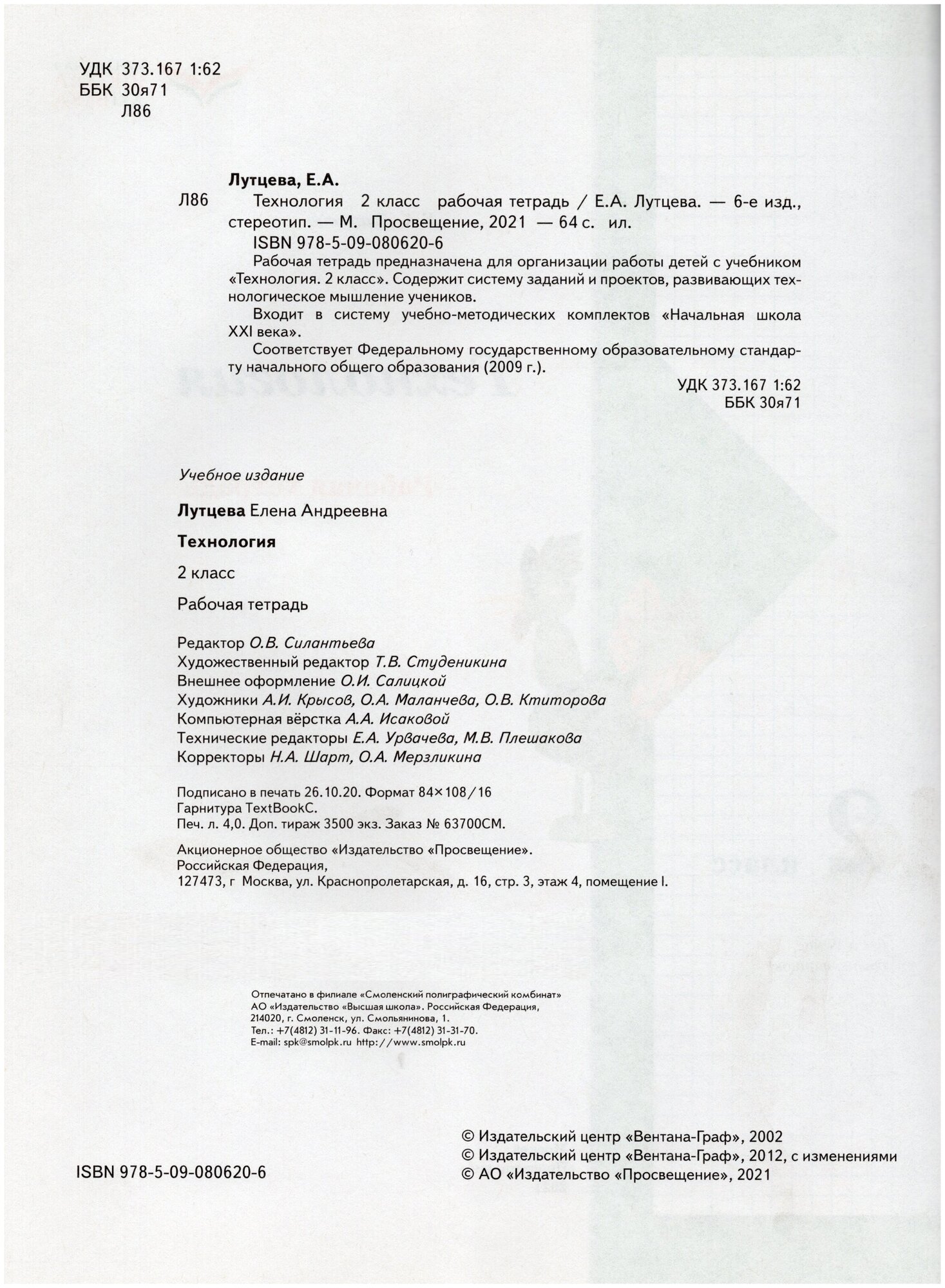 Сервис сравнения цен СкидкаГИД предлагает сравнить цены на товар «Книга: Технология 2 класс Рабочая тетрадь (Лутцева Елена Андреевна); Вентана-Граф, 2021»