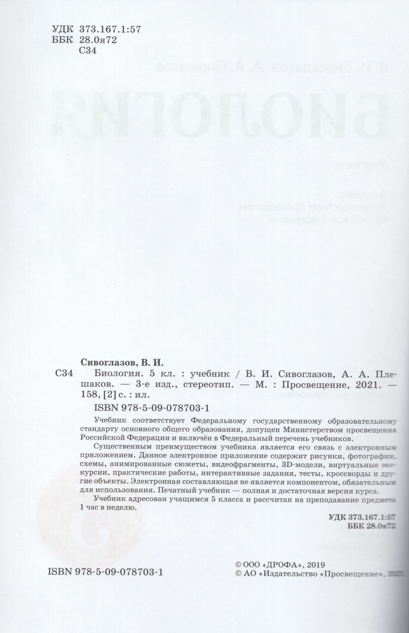 Книга: Биология 5 класс Учебник (Плешаков Андрей Анатольевич; Сивоглазов Владислав Иванович); Дрофа, 2021