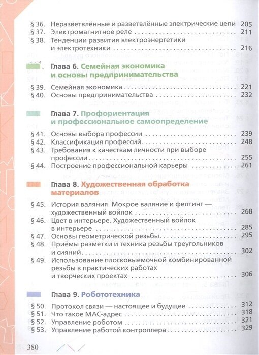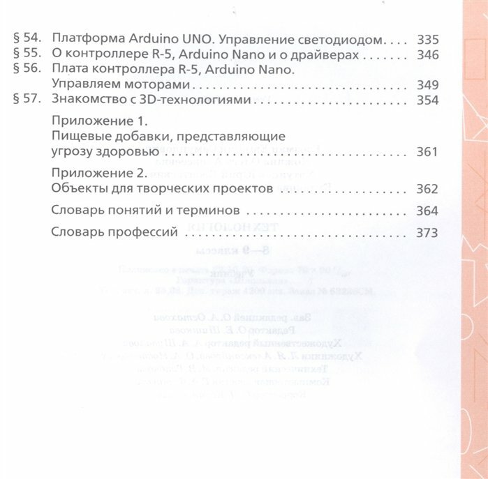 Учебник способствует пониманию обучающимися сущности технологии обработки конструкционных, текстильных материалов, пищевых продуктов, художественно-прикладной обработки материалов, формированию технологической культуры и проектно-технологического мышления, а также построению образовательного маршрута и планов в области профессионального самоопределения. Учащиеся знакомятся с биотехнологиями, современными медицинскими, социальными, лазерными и нанотехнологиями. Рассматривают принципы семейной экономики и основы предпринимательства. Продолжают начатое ранее изучение основ электротехники и робототехники. Разрабатывают и выполняют творческие проекты. Методический аппарат учебника составляют вопросы для самопроверки, система заданий, включающих исследовательские, графические, практические задания, темы проектов, задания с использованием Интернета. Учебник содержит рубрику «Полезная информация», в которую помещён дополнительный материал, словари профессий и основных понятий и терминов. Учебник соответствует Федеральному государственному образовательному стандарту основного общего образования.