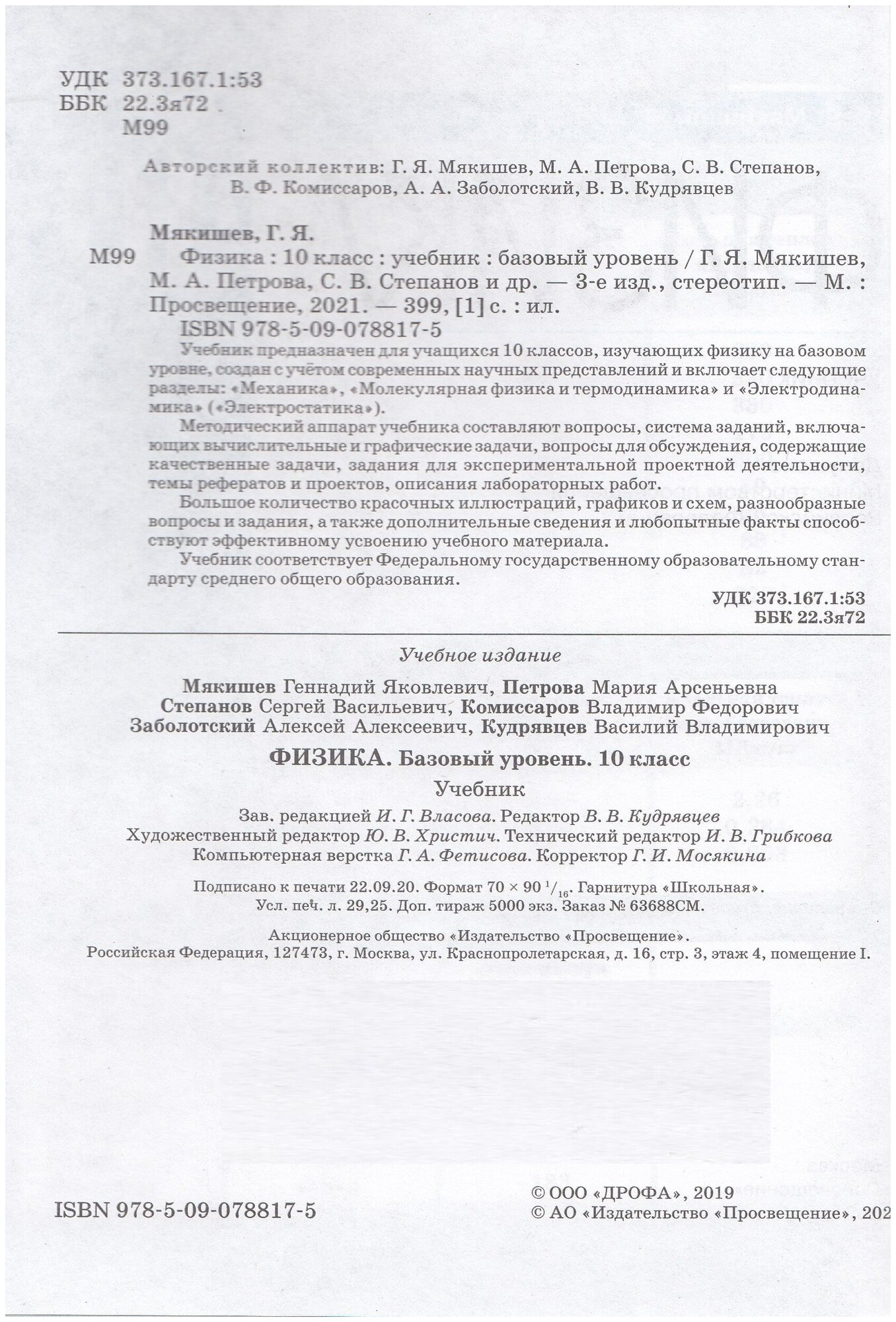 Учебник предназначен для учащихся 10 классов, изучающих физику на базовом уровне, создан с учётом современных научных представлений и включает следующие разделы: «Механика», «Молекулярная физика и термодинамика» и «Электродинамика» («Электростатика»).