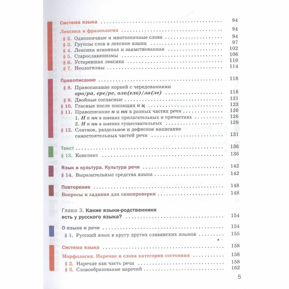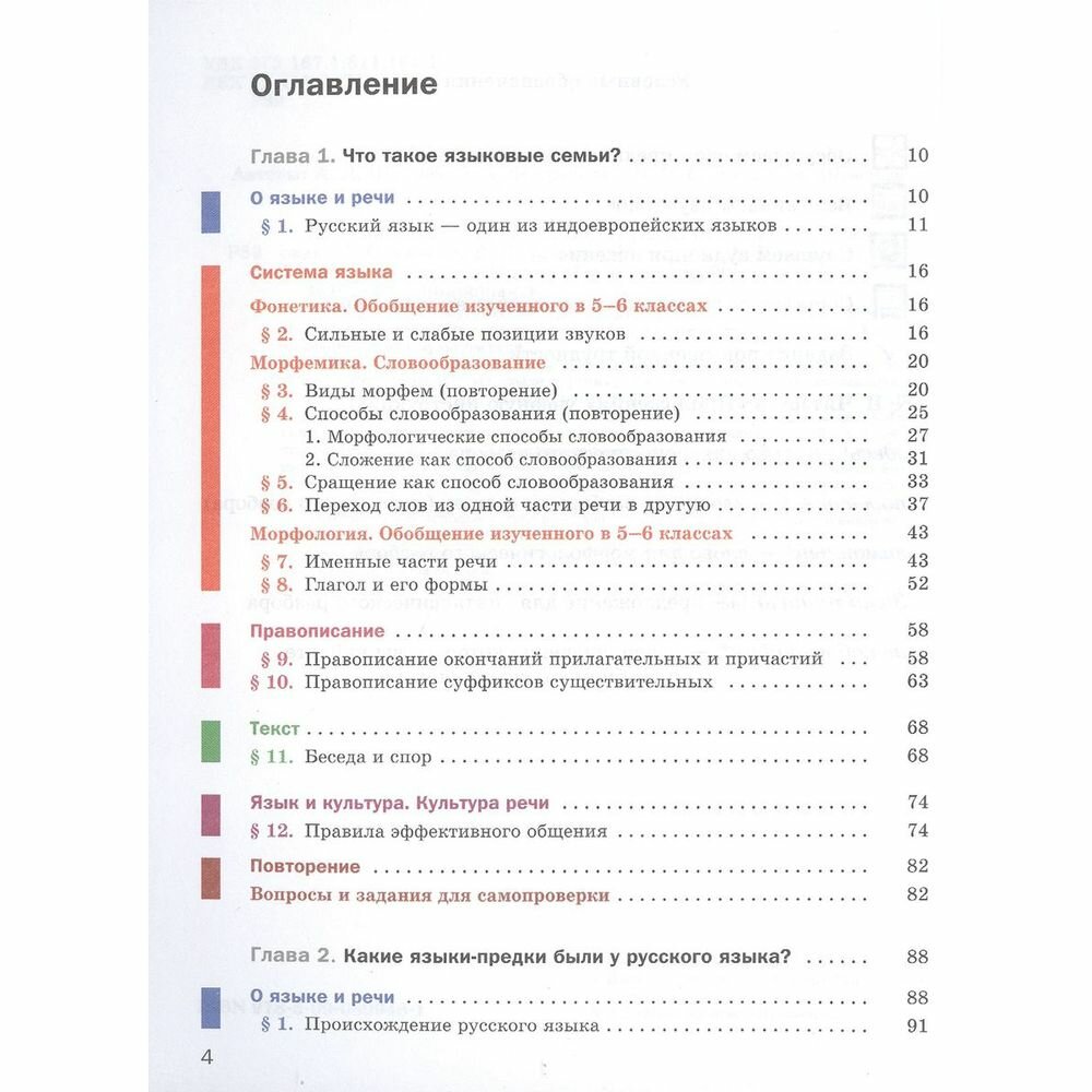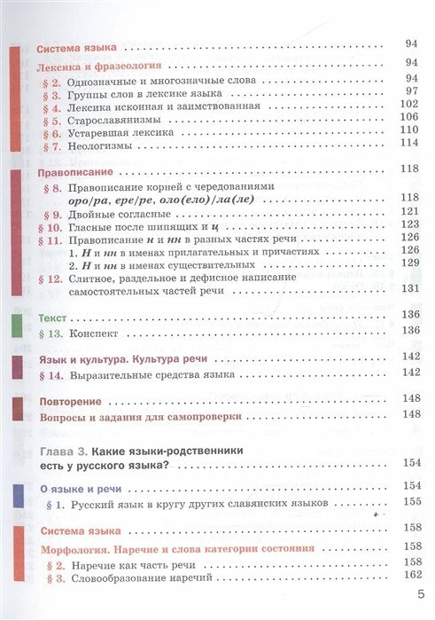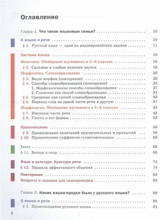Учебник строится по модульному принципу: каждая из глав включает шесть повторяющихся разделов: "О языке и речи", "Системаязыка", "Правописание", "Текст", "Язык и культура. Культура речи" и "Повторение".