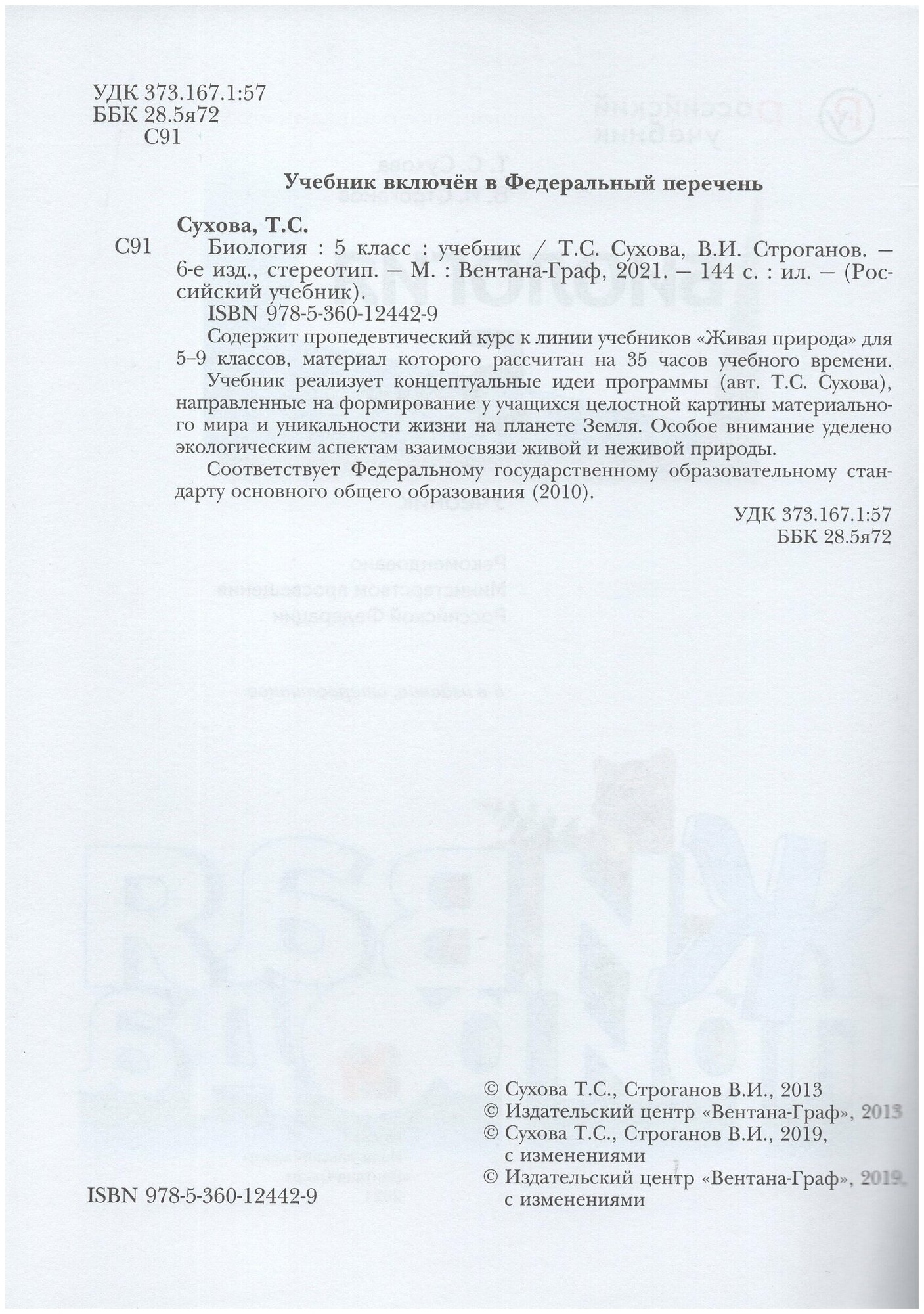 Биология 5 класс Живая природа Учебник (Сухова Т., Строганов В.); ВЕНТАНА-ГРАФ, 2021