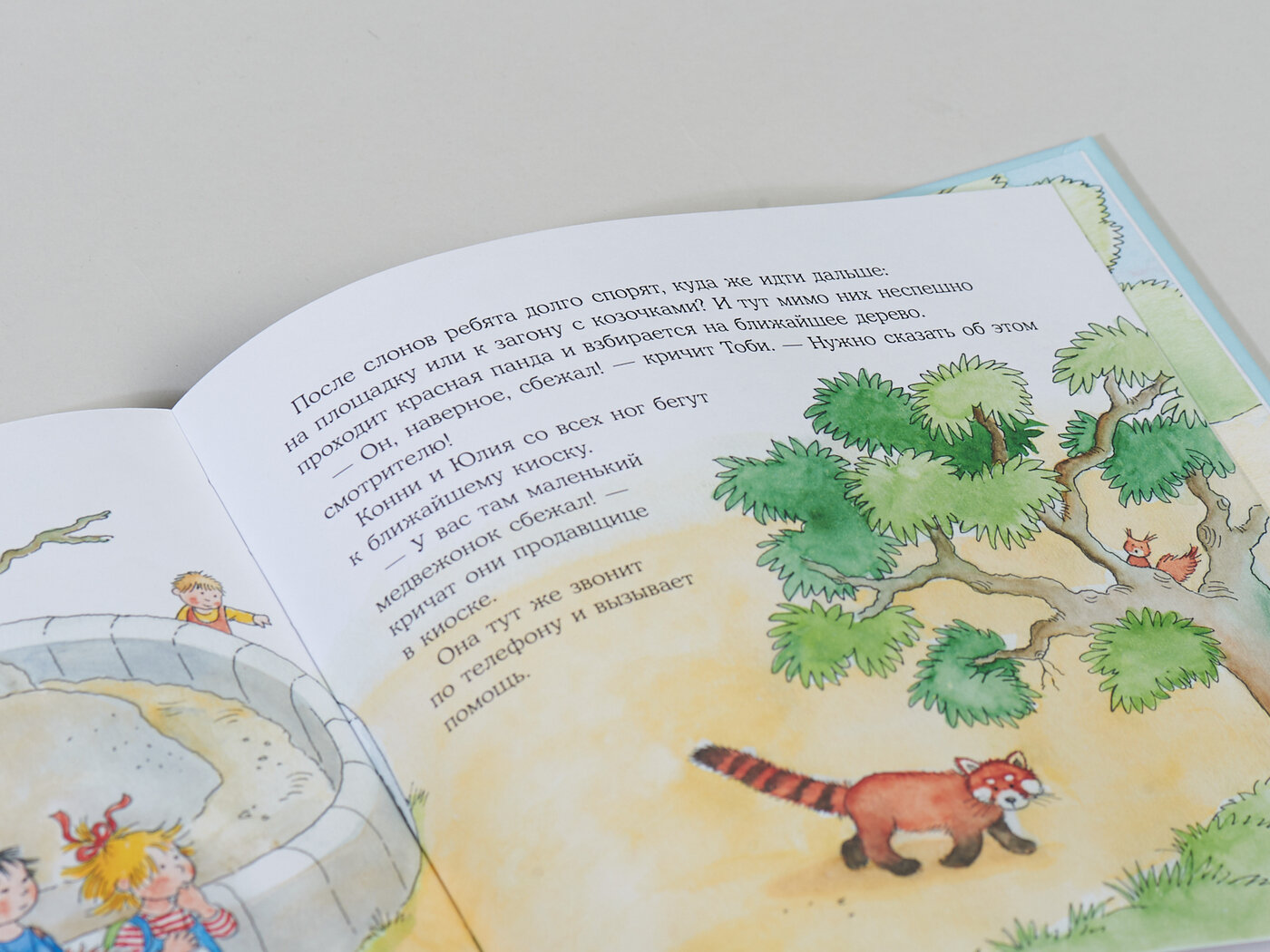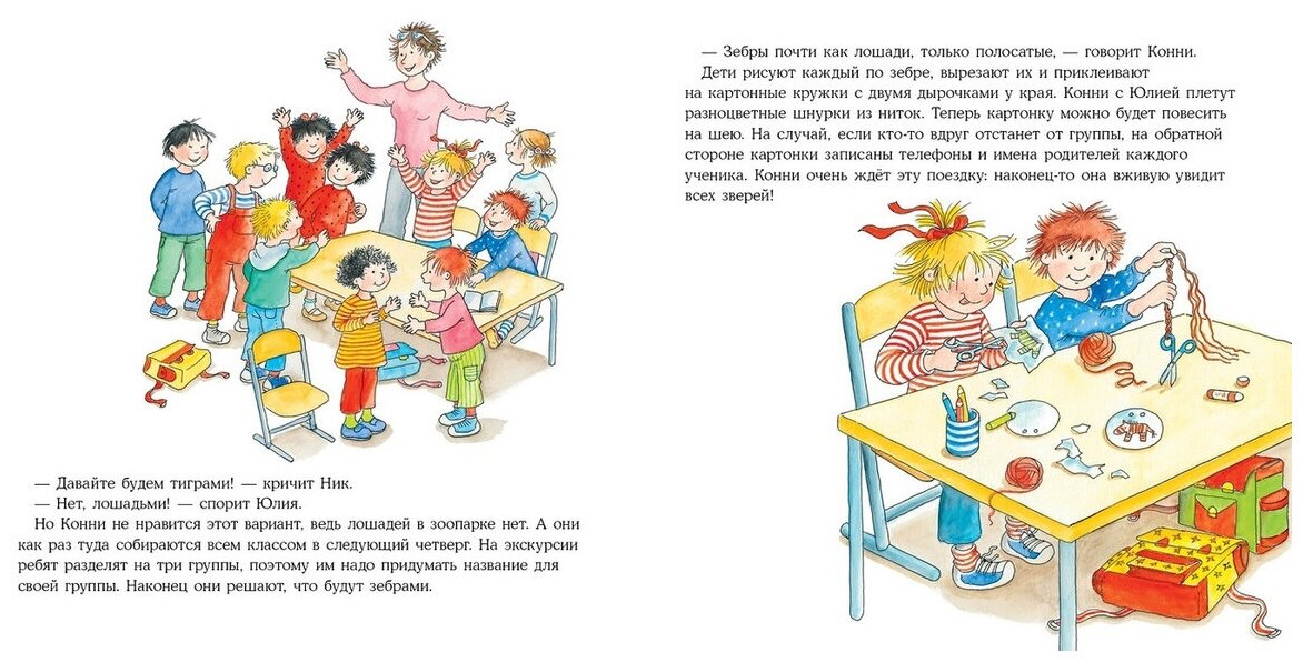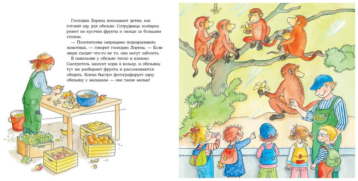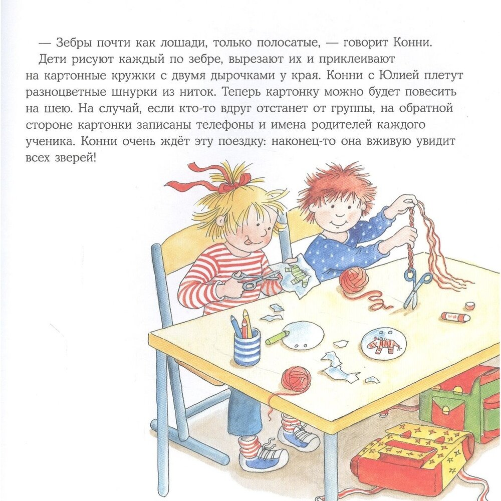 Неплохая история, но здесь есть фраза, что Конни впервые увидит животных. Однако, тут она уже школьница. А в книге "Конни злится" она ещё ходит в детский сад и там они договорились вместе с родителями сходить на выходных в зоопарк. Несостыковка.
