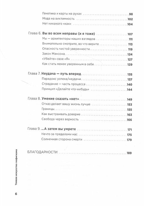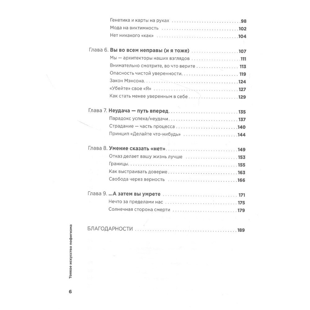 Популярный блогер Марк Мэнсон предлагает свой, оригинальный подход к этому вопросу. Его жизненная философия проста - необходимо научиться искусству пофигизма. Определив то, до чего вам действительно есть дело, нужно уметь наплевать на все второстепенное, забить на трудности, послать к черту чужое мнение и быть готовым взглянуть в лицо неудачам и показать им средний палец. В своей остроумной книге, мгновенно ставшей бестселлером № 1 в Amazon, через истории жизненных неурядиц, провалов и лаж (как своих, так и известных людей) автор рассказывает, как овладеть этим тонким искусством пофигизма, зачем нужно быть менее уверенным в себе и что принцип «Делайте хоть что-нибудь» — отличная мотивация. Эта книга поможет вам жить легко вопреки всем трудностям, меньше волноваться и получать удовольствие от жизни.