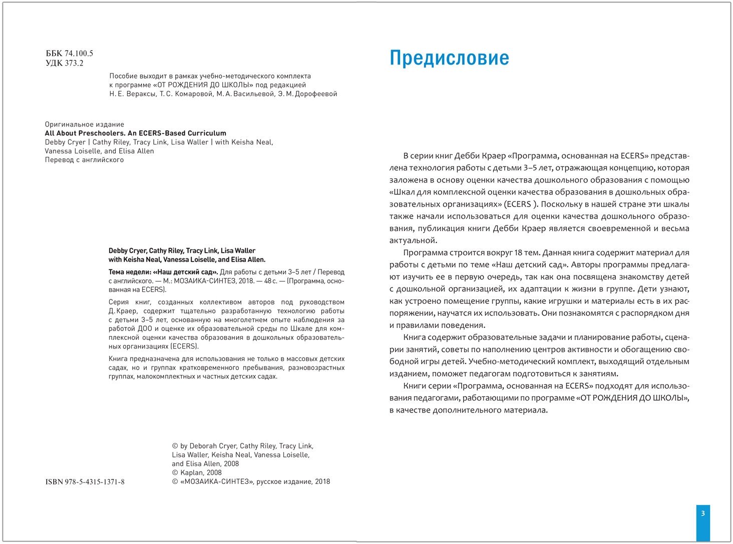Книга предназначена для использования не только в массовых детских садах, но и группах кратковременного пребывания, разновозрастных группах, малокомплектных и частных детских садах.