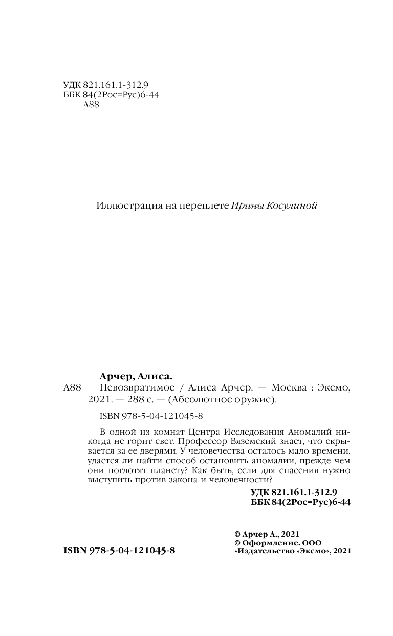 Книга: Невозвратимое (Алиса Арчер); Эксмо, Редакция 1, 2021