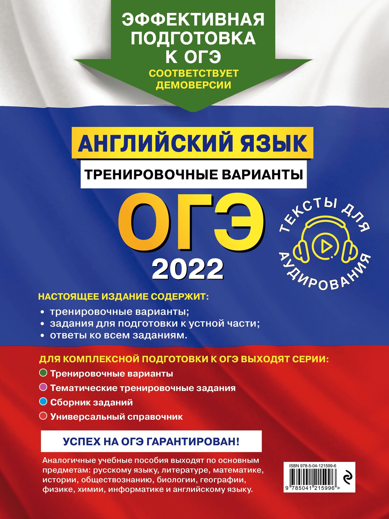 ОГЭ-2022. Английский язык. Тренировочные варианты (+ аудиоматериалы) (Громова Камилла Алексеевна, Вострикова Ольга Владимировна, Иняшкин Станислав Геннадьевич); Эксмо-Пресс, 2021