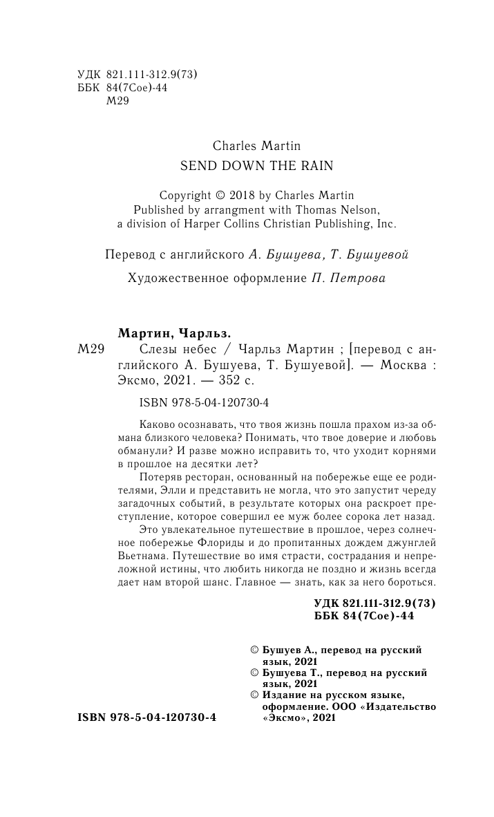 Сервис сравнения цен СкидкаГИД предлагает сравнить цены на товар «Книга: Слезы небес (Чарльз Мартин); Эксмо, Редакция 1, 2021»